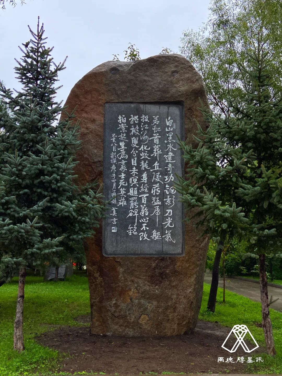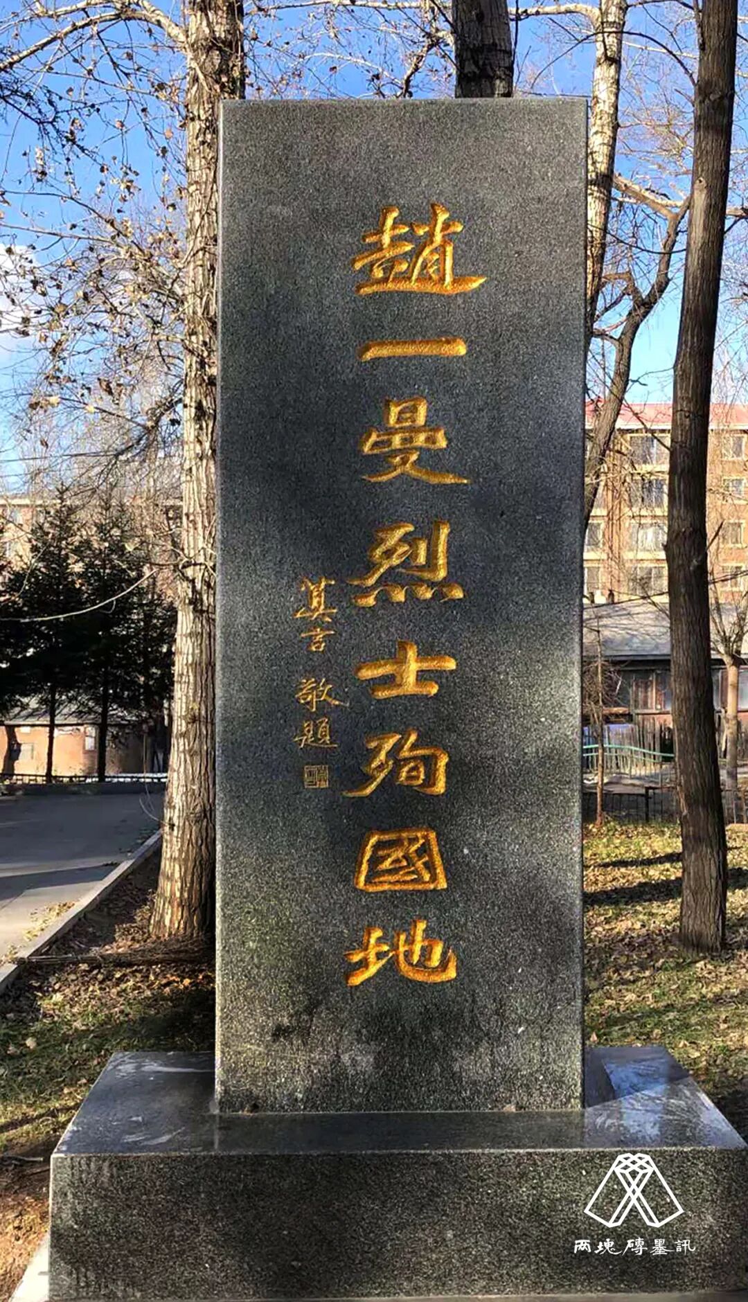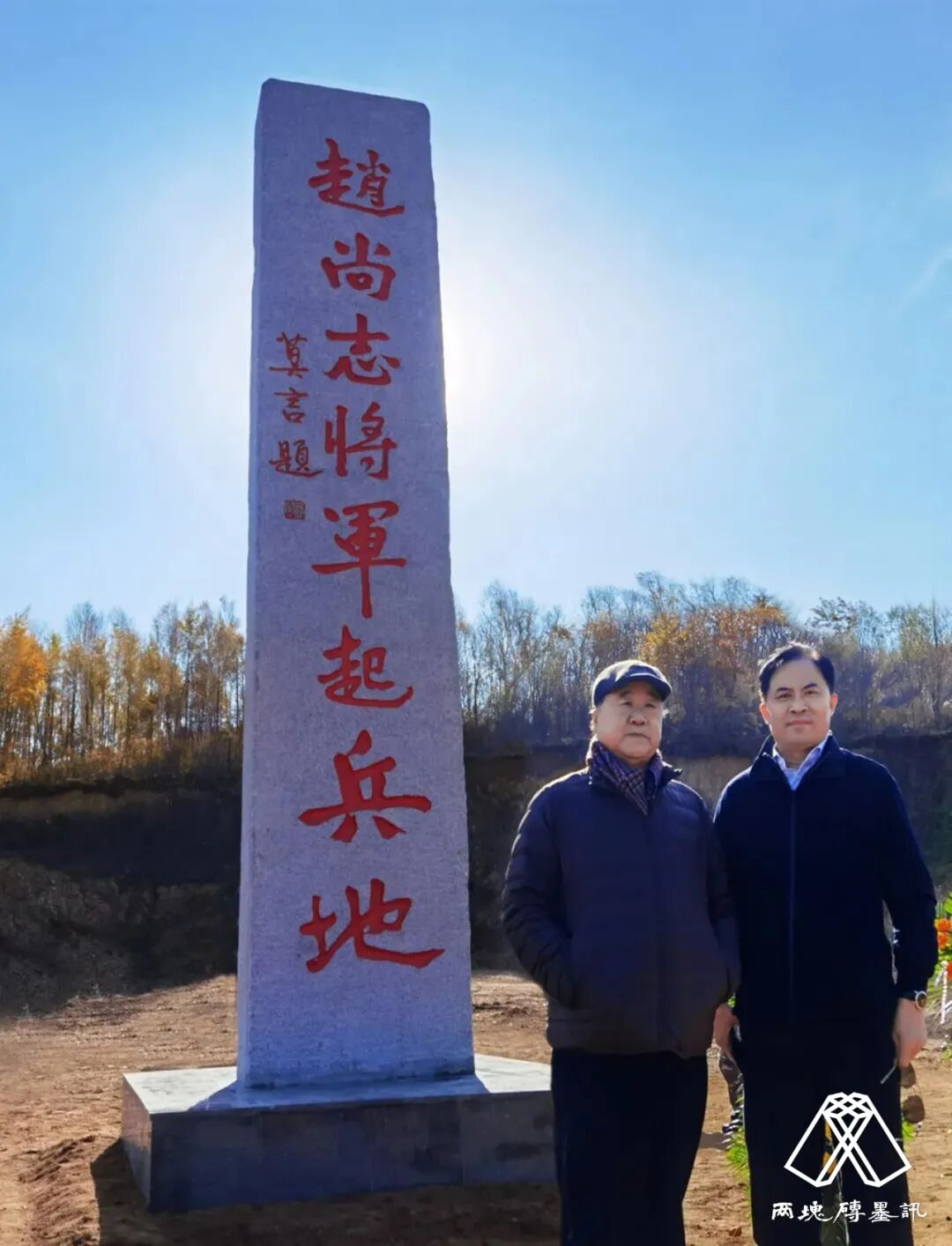 莫言 王振在赵尚志将军起兵地碑前 摄影 陈玲玲