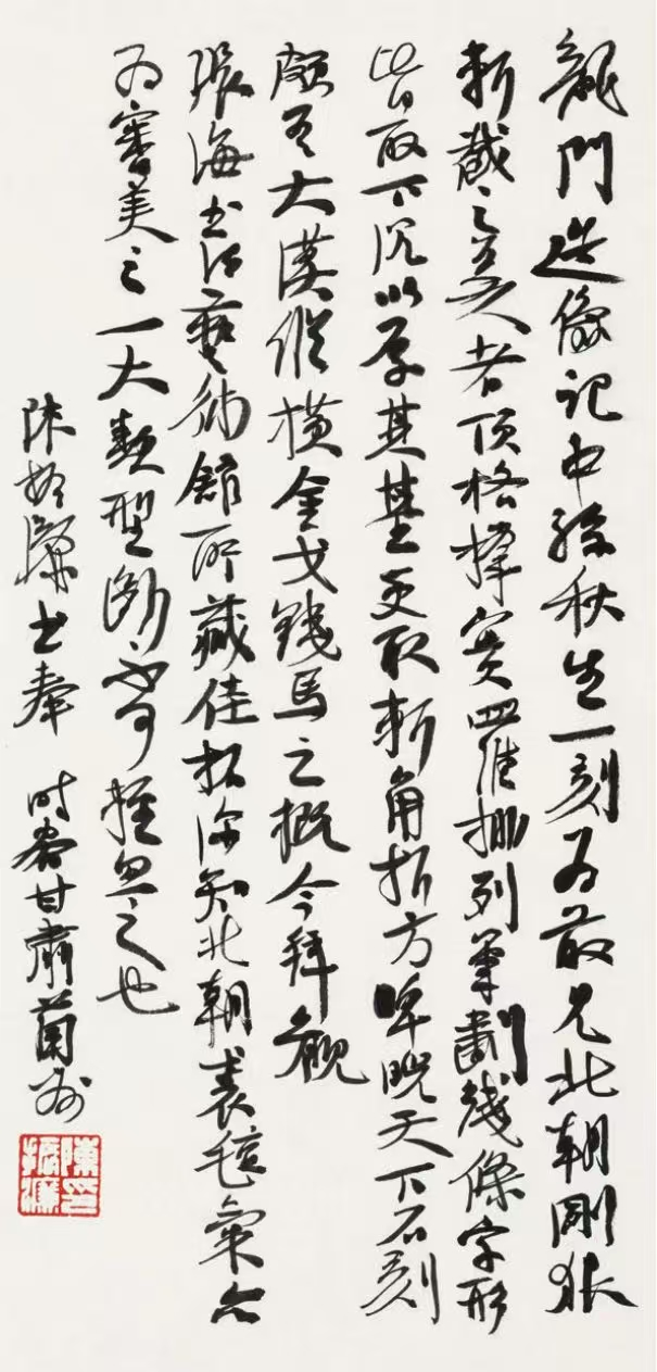 书法的文气,既有赖于点画线条与汉字造型之间,也依于汉字文辞语义的表达。此即我坚持十年的《书法史记》同步实录的创作大项目;和力倡数十年的“阅读书法”并十余次举办自撰文字的主题展览、其所包含的思想观念的动力和源泉。