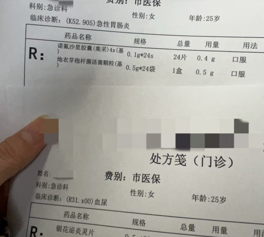 据她所述,在和同事饮用蔬菜茶饮后均出现了胃痛、拉肚子的现象,第二天甚至还出现了血尿的情况,在去到医院检查后,查出了急性肠胃炎和血尿的症状。
