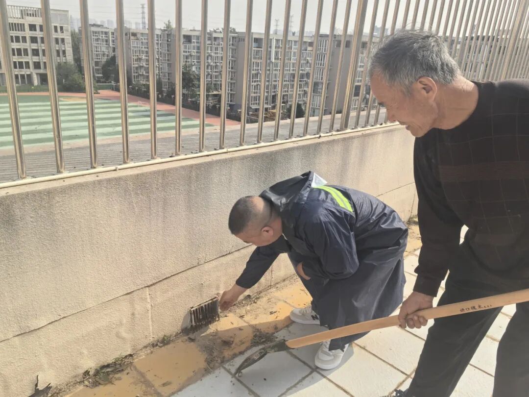1. 校园地面组:检查教学楼入口防水挡板、操场排水沟,清理杂物确保水流畅通;