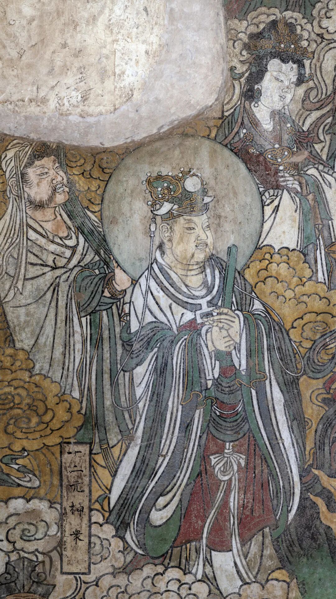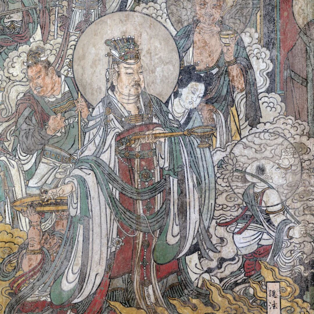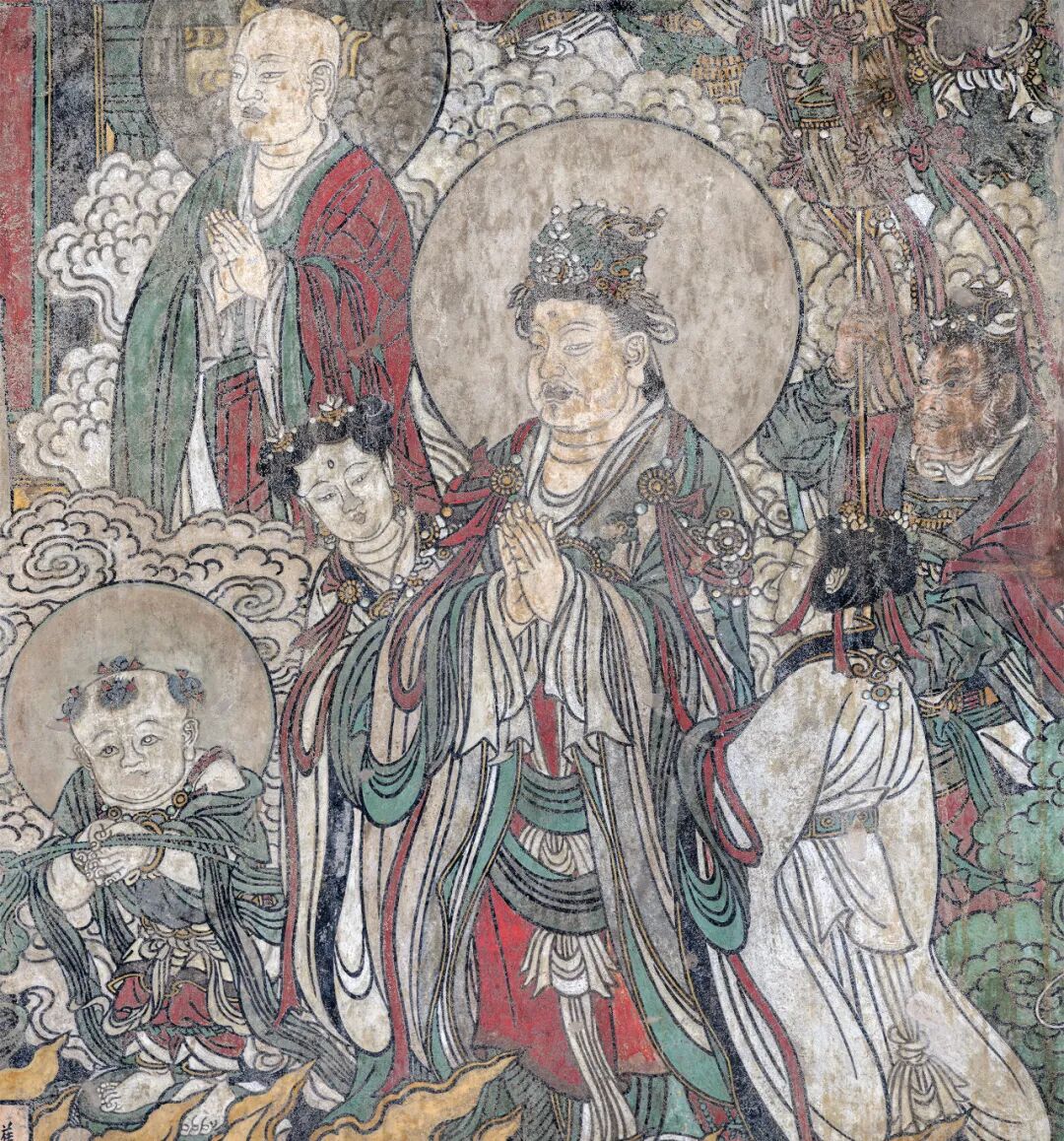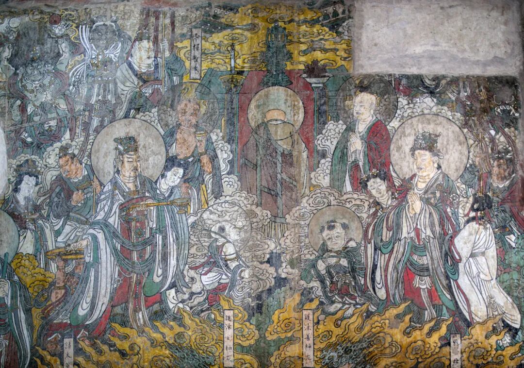 腰殿西壁三世佛和礼佛图,下为道教万神图。