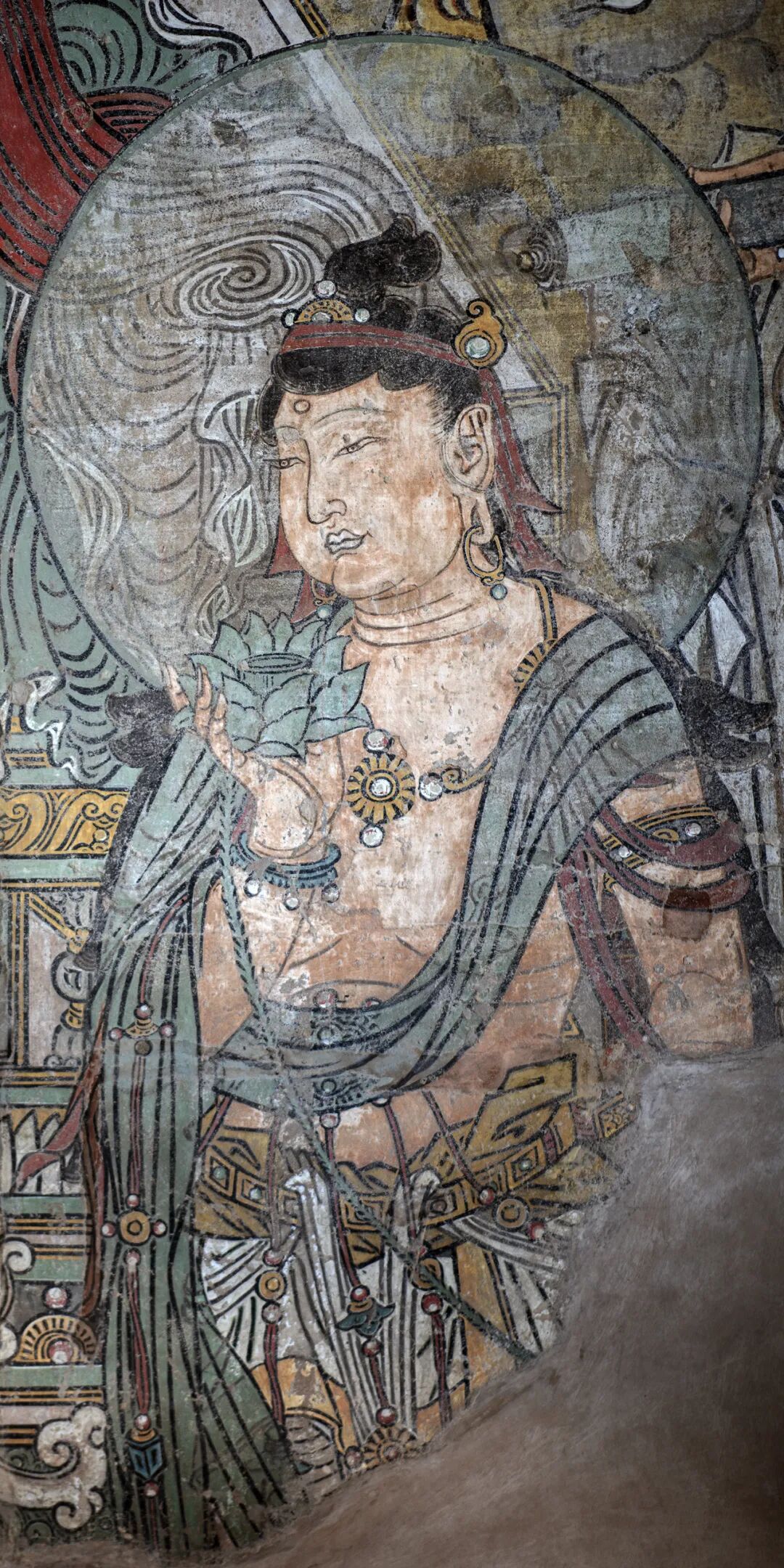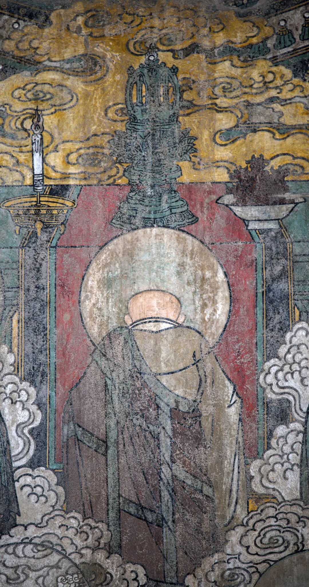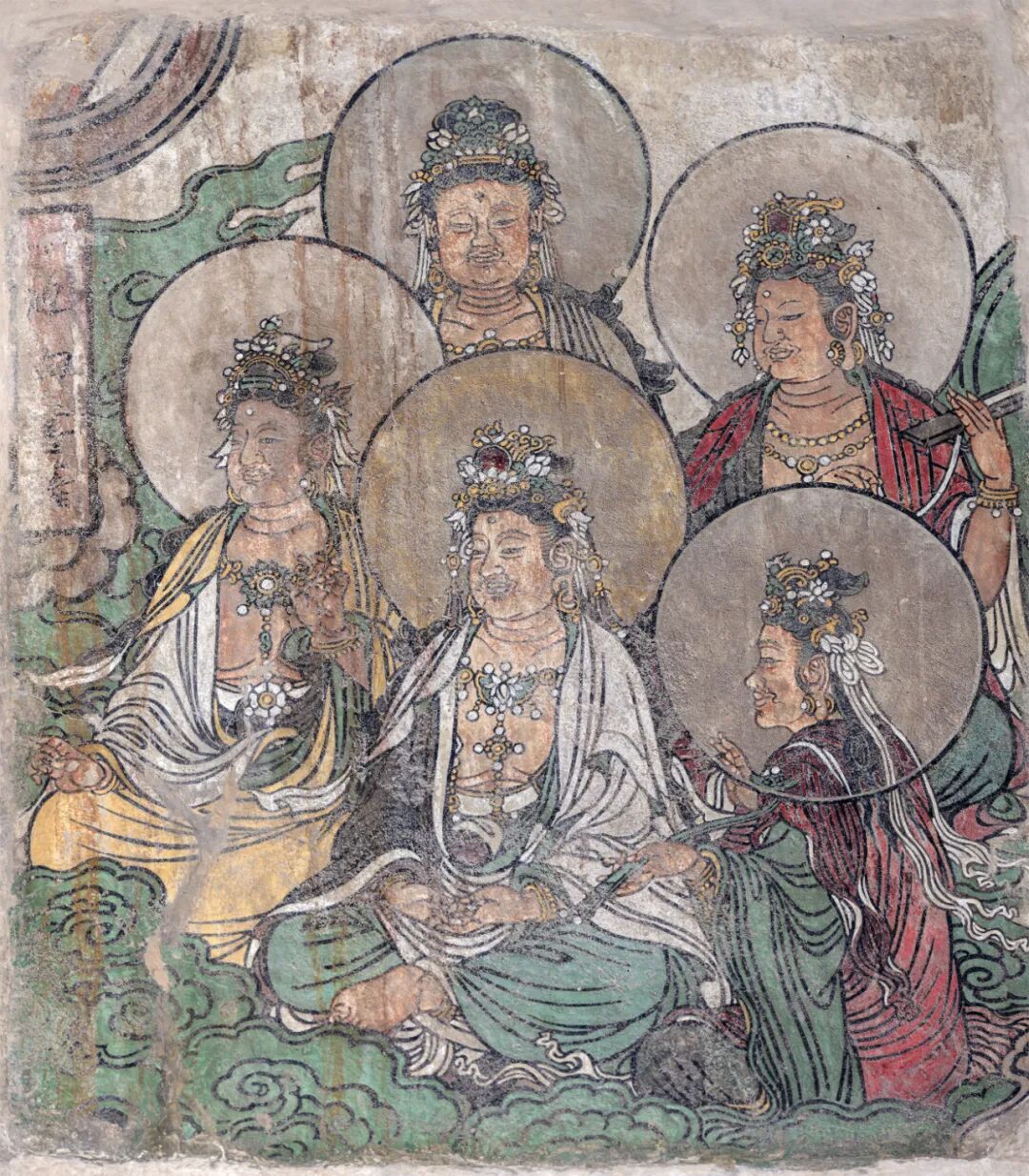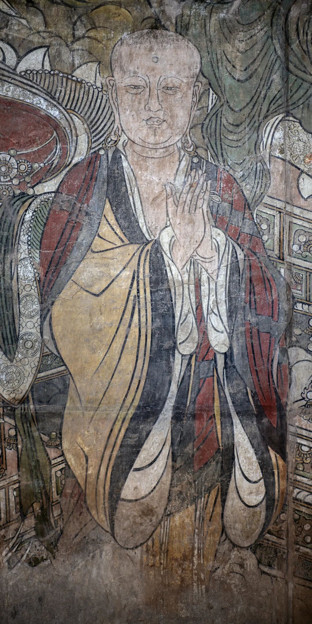 腰殿西壁三世佛和礼佛图,下为道教万神图。