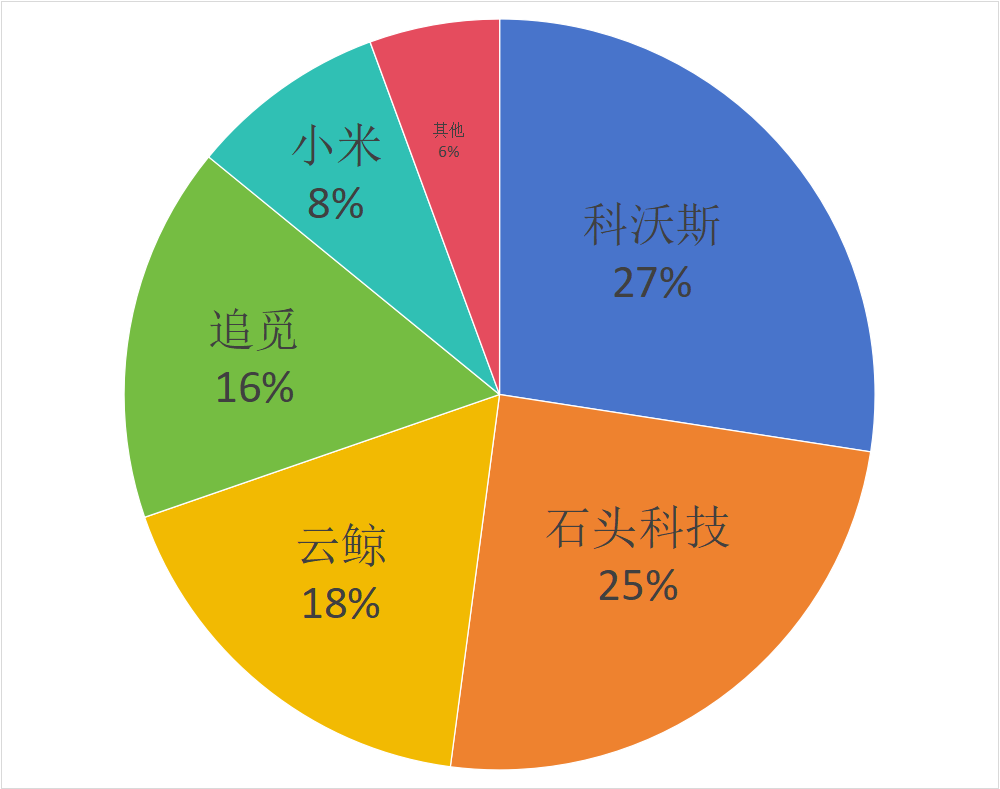 近年来,也不是没有其他品牌尝试过冲击扫地机器人市场。传统家电代表的美的,曾靠着性价比在前两年异军突起,但并没有将市场格局改写。如今的扫地机器人市场,依然是科石云追米五巨头霸占绝大多数市场份额的局面。