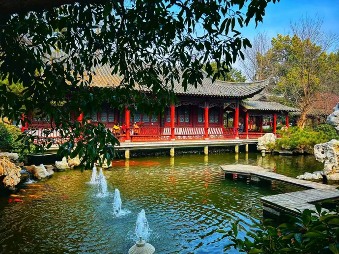 紫荆山公园还藏着一座“小苏州”!位于南园的梦溪园,开放于2013年,溪水潺潺、鸟语花香,号称郑州最美庭院。移步换景的廊桥水榭、太湖石堆叠的狮子林同款假山、雕花漏窗的月洞门、曲廊深处藏着的拙政园式花窗,处处散发着浓厚的江南韵味,是郑州市民打卡拍照的胜地。立于听雨轩木雕花窗下,光影会自动为侧脸勾出工笔画轮廓;浣月桥石栏旁随手抓拍,朋友圈都以为你去了平江路。