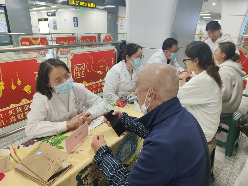 舞台一侧,河南中西医结合医院开展的义诊活动同步进行。义诊区域划分明确,涵盖肾病科、内分泌科等多个专科咨询台,专家们耐心细致地解答居民健康疑问,提供个性化诊疗建议。现场还设置了丰富多样的义诊项目,免费测量血压帮助居民实时掌握血压情况;古法刮痧、耳穴压豆、火龙罐等中医特色疗法,吸引众多居民及辖区环卫工人前来体验,感受传统医学的独特魅力;视力检查则为不同年龄段居民进行眼部健康筛查,全方位呵护居民身体健康。