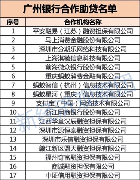 在广州银行最新公布的17家互联网贷款业务合作机构名单中,覆盖蚂蚁、奇富科技等6家头部助贷平台,也包含乐信融担、奇富融担等7家融资担保公司,以及微众银行、网商银行等持牌金融机构。