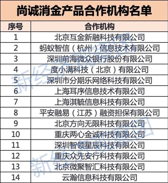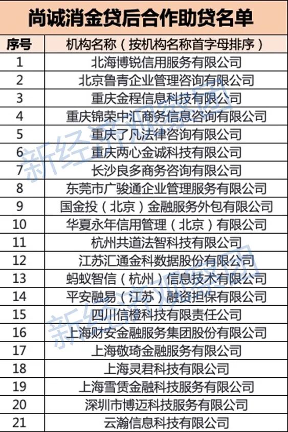 2. 尚诚消费金融:14家产品合作平台,21家贷后合作机构