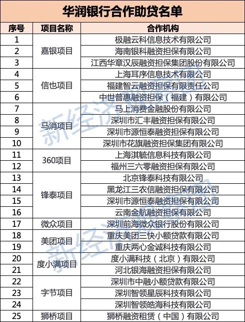 8. 华润银行:25家助贷合作方,隶属10家公司