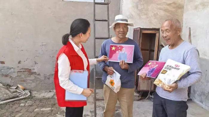 在“手势舞+红歌传唱”环节,社工结合老年运动特点,将《没有共产党就没有新中国》歌词转化为简单重复性手势,配合蓝牙音响现场教学,实现“认知-动作-情感”的多维渗透。当30位老人挥舞小党旗齐唱时,社工捕捉到76岁李爷爷不自觉湿润的眼眶,随即通过个别化沟通了解到其曾受惠于五保供养政策,这一细节被及时融入后续的党旗合影环节——社工鼓励老人讲述“党带来的好日子”,将抽象的党建教育转化为具象化的生命叙事,形成“政策认知-情感认同-价值共鸣”的专业服务闭环。