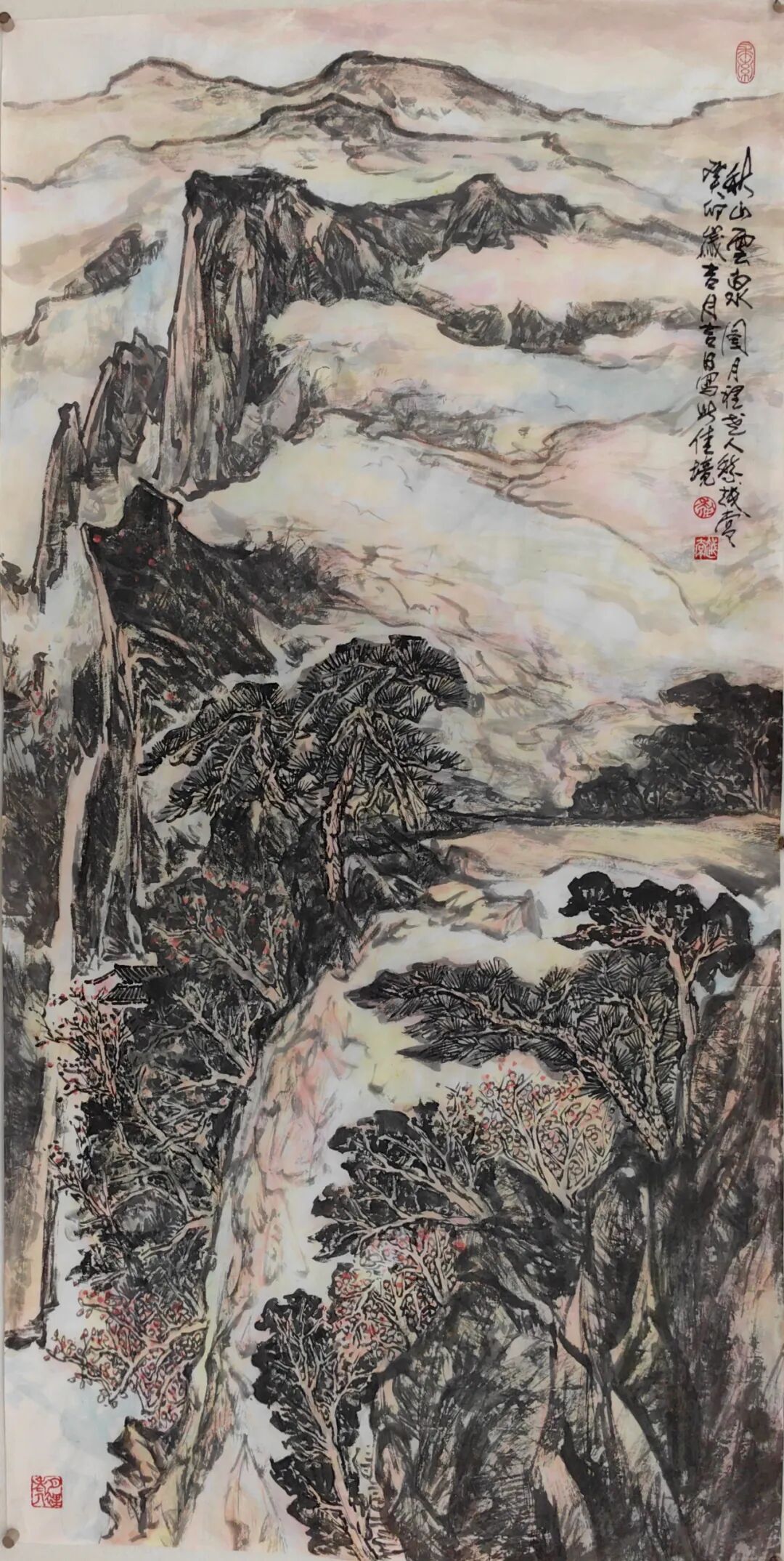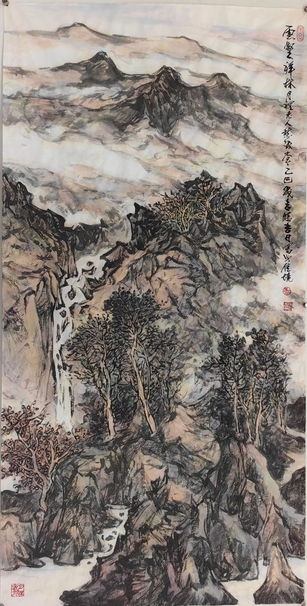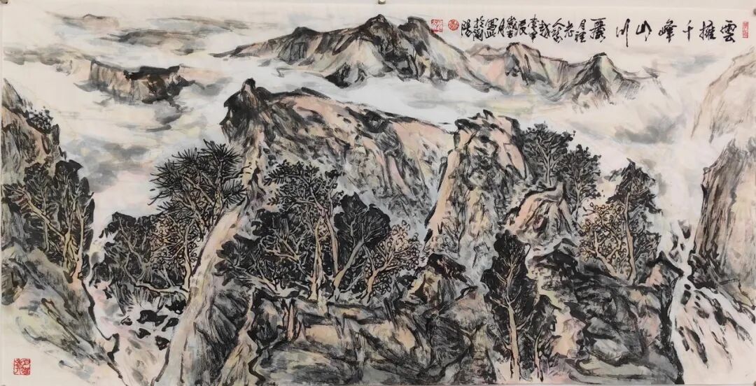 其腕底风云,既深植于笔墨丹青之沃壤,复能吐纳八面新潮,以铁笔生花,铸就时代气象。作品巍巍乎如青铜之鼎,镌刻民族精魂;浩浩乎若江海奔涌,激荡时代气韵。此非仅为技艺之精绝,更在于以丹青为舟楫,传薪火于未央,使古老智慧焕然新生,令华夏气度磅礴寰宇。