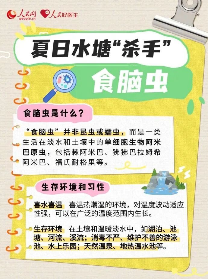 炎炎夏日,很多人都会选择玩水解暑,但是看似清澈透明的水中,实则含有不少细菌、病毒以及寄生虫等。什么是“食脑虫”?食脑虫真的会吃大脑吗?感染后有什么危险信号?