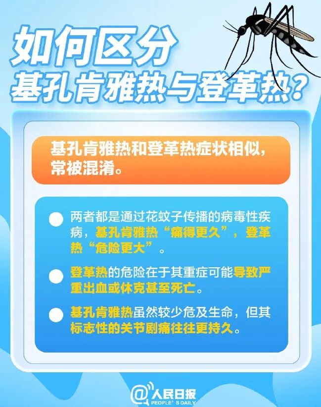近期,我国南方个别城市发生基孔肯雅热输入疫情并引发本地传播,患者会突然出现发热、皮疹和关节疼痛。什么是基孔肯雅热?和登革热有啥不同?哪些人群应重点防范?个人该如何预防?如何正确选用驱蚊产品?9图科普↓↓