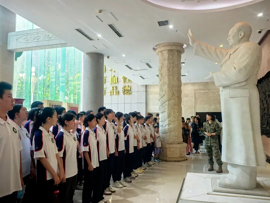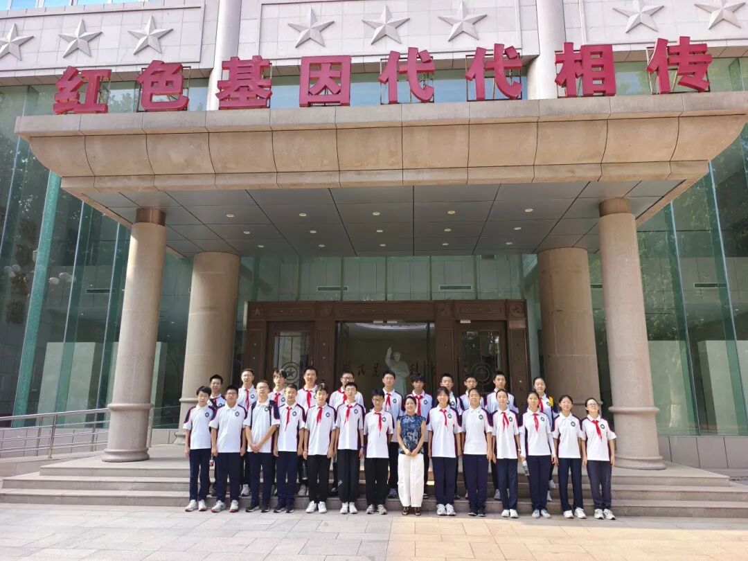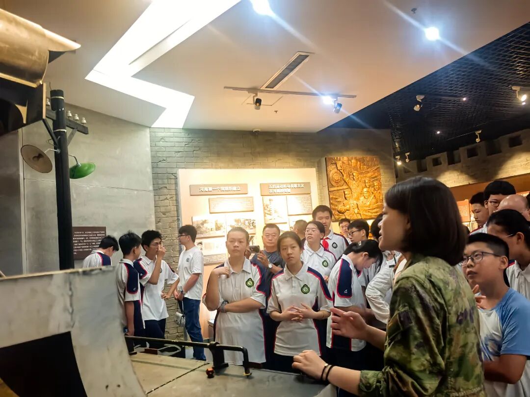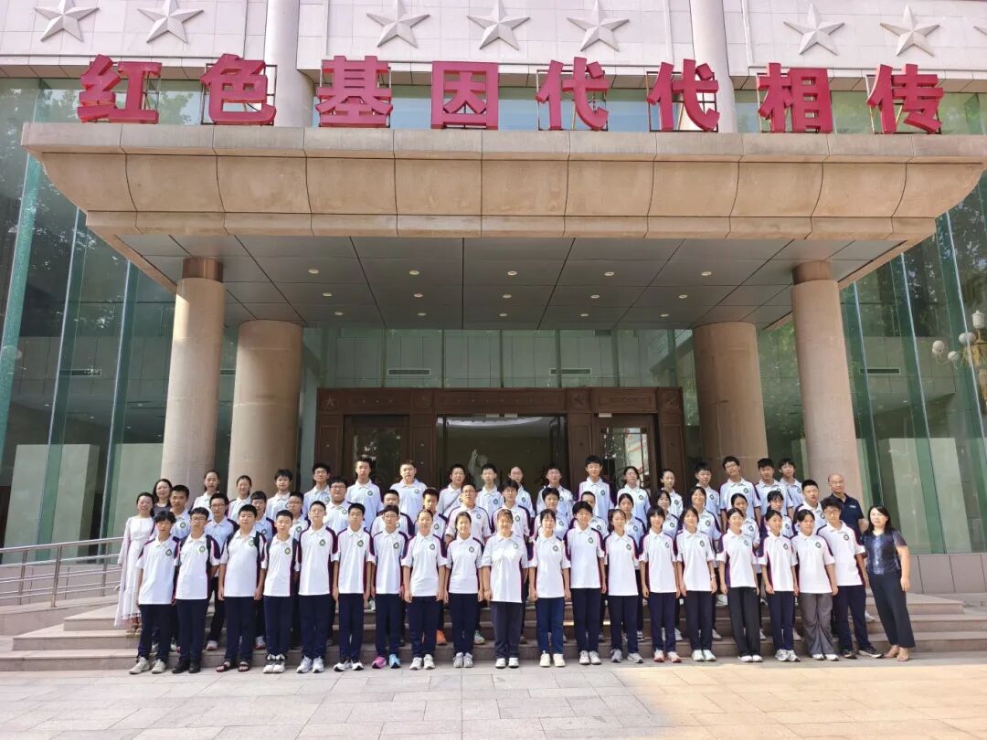 建军98周年次日,2025年8月2日上午,郑州市第七初级中学陈珂副校长,李少锋主任,刘红年级长组织教师、学生及家长代表百余人,迎着八一军旗的余晖,在河南省军区纬一路大门口庄严集结,开启“赓续八一精神 共筑钢铁长城”国防教育特别行动。通过实地参观与观影学习,共上一堂生动的“国防教育课”。