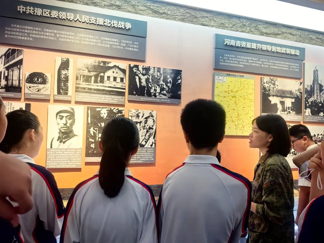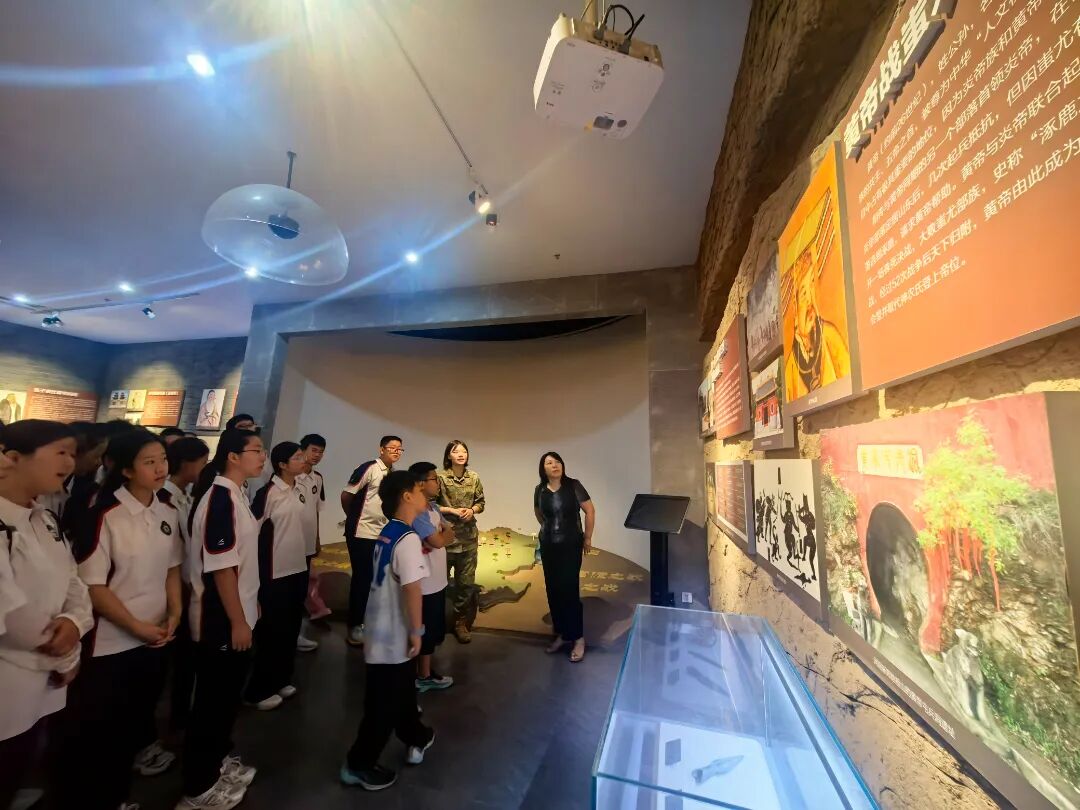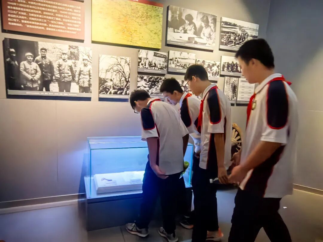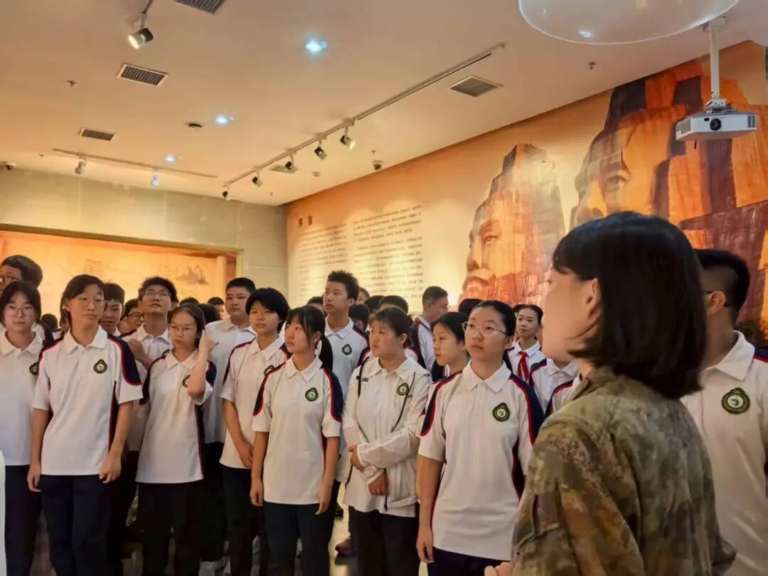 8:40,师生家长列队进入河南省国防教育基地。在讲解员引导下,大家依次参观了“国防成就展”“武器装备陈列厅”等展区,一件件实物、一幅幅图片让参观者震撼不已。“原来我们国家的国防科技这么先进!我要更努力学习,将来为国防做贡献!”七年级学生兴奋地说。家长一边用手机记录,一边感慨:“带孩子来现场感受,比书本上的知识更直观、更深刻。”