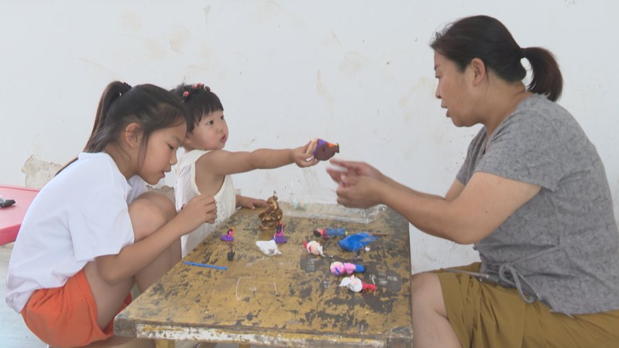 “这是我捏的哪吒,放暑假以来,我跟着这些老师,捏了很多像这样有趣的作品。”
