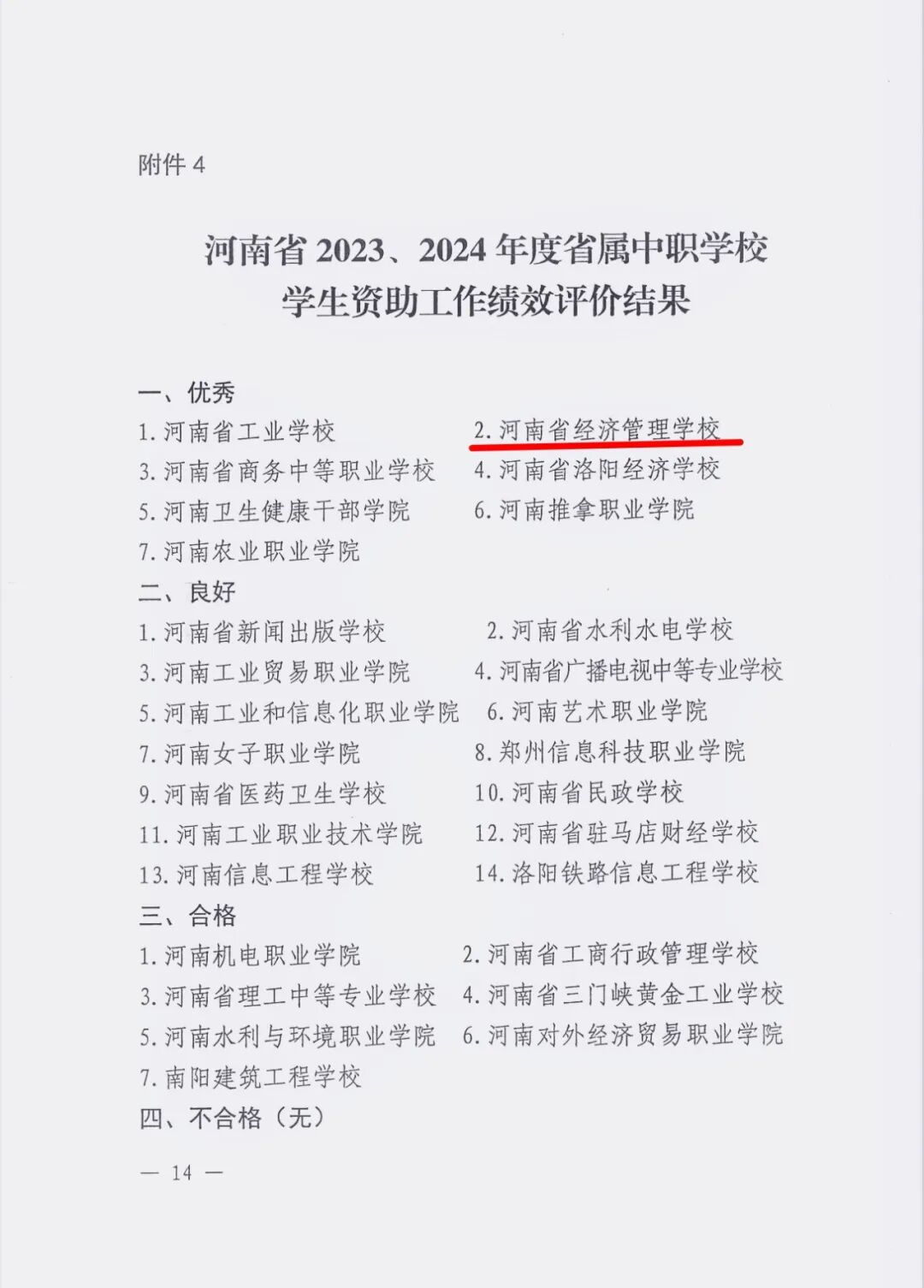 近日,河南省教育厅公布了2023—2024年度全省高校和省属中职学校学生资助工作绩效考评结果,我校再次名列前茅,连续五年荣获“优秀”等次。由河南省经济管理学校申报的创新项目《数智化赋能中职资助规范化》成功入选全省学生资助工作创新案例,标志着学校在资助育人制度建设、育人实效、示范推广等方面迈上了新台阶。