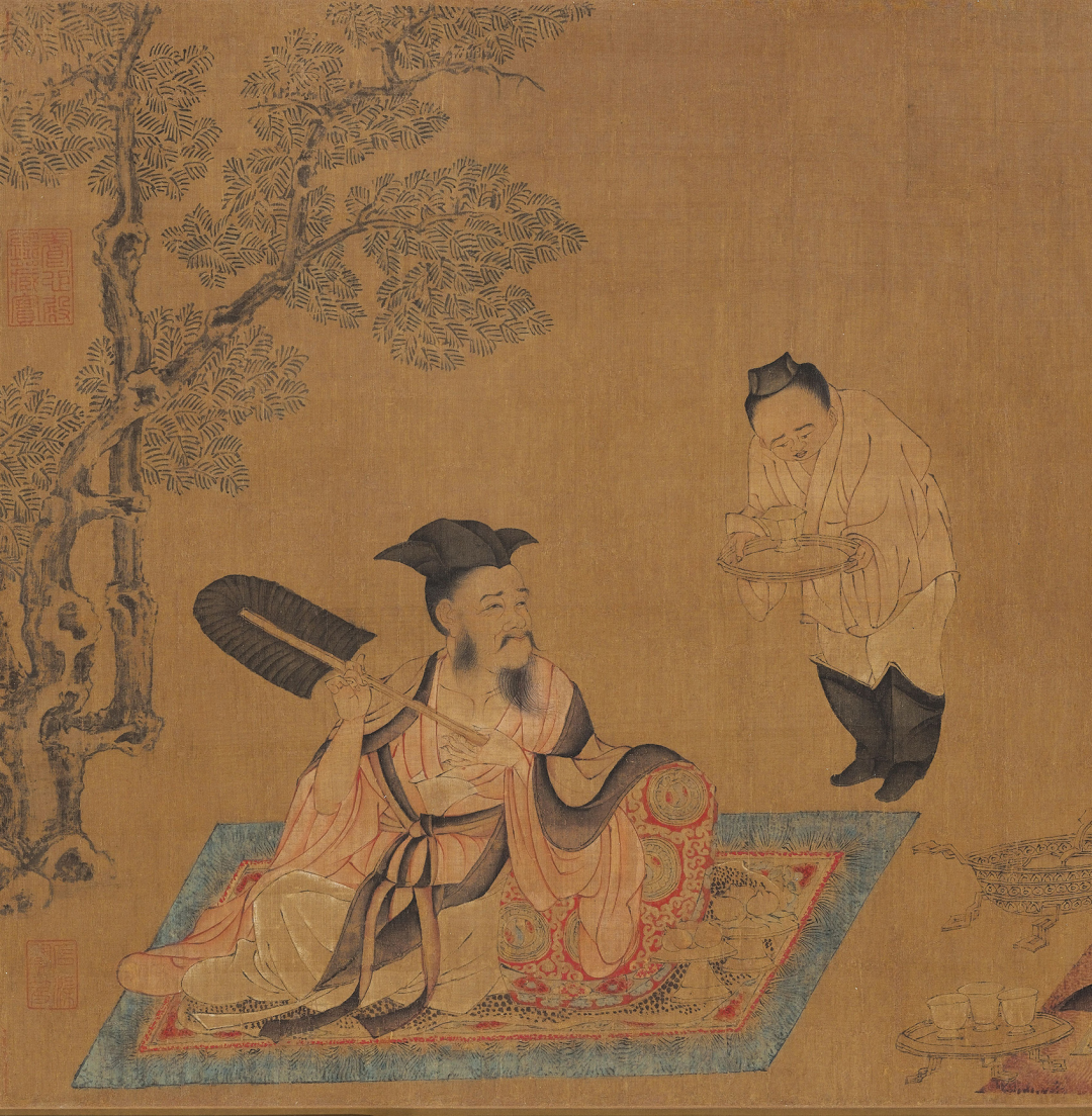 《高逸图》全卷裁切示意(唐·孙位,现藏上海博物馆)