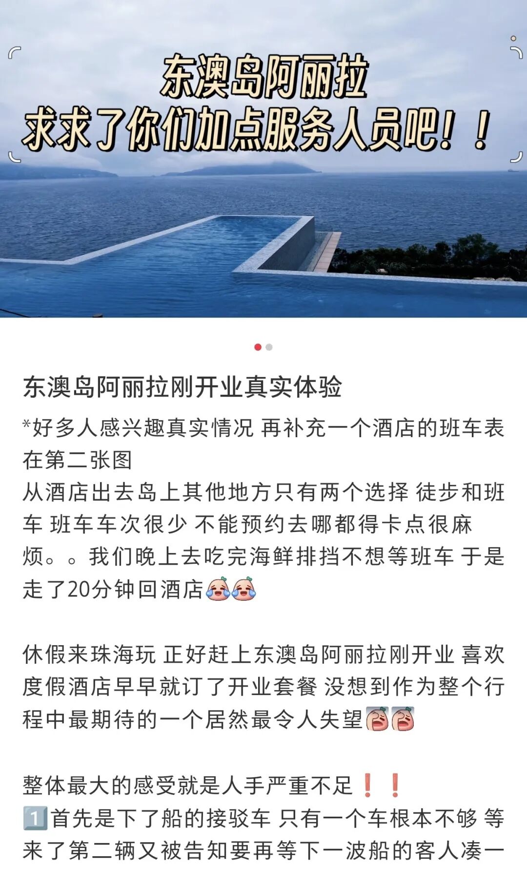 就比如刚开业的珠海阿丽拉酒店,已有部分消费者在社交平台上吐槽酒店体验与价格不匹配,其中酒店服务欠缺成为被吐槽最多的一点。