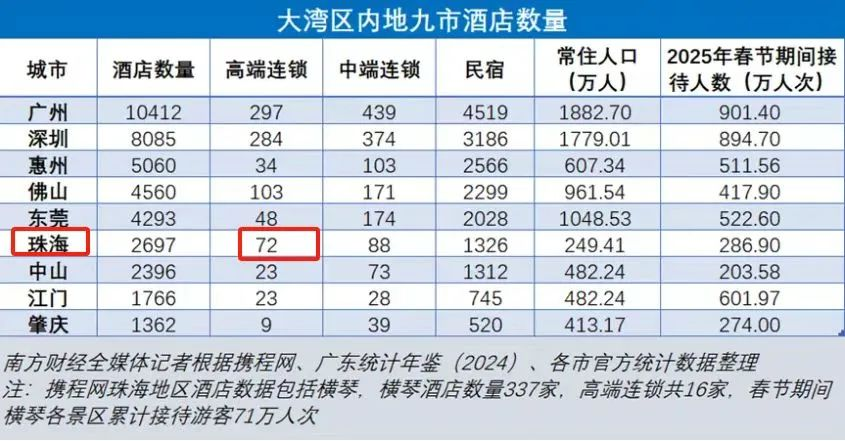 有业内人士指出,珠海当地的产业能级也相对有限,核心IP长隆和航展更多的也是外部植入元素,因此游客在珠海短暂停留的比较多,或转向澳门住宿,或选择广州、佛山,旅游产品整体不丰富也容易导致酒店这样的过夜产品需求不足。