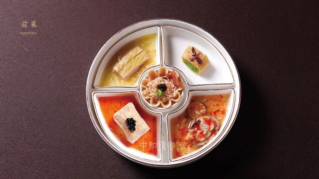 帕马火腿捞雪蟹肉、酸柑汁花甲王、包浆豆腐、郑州鲜味鸡、翡翠腐皮卷,五道前菜精致开胃,奇妙的搭配带来惊喜的口感,为味蕾带来轻盈开篇。