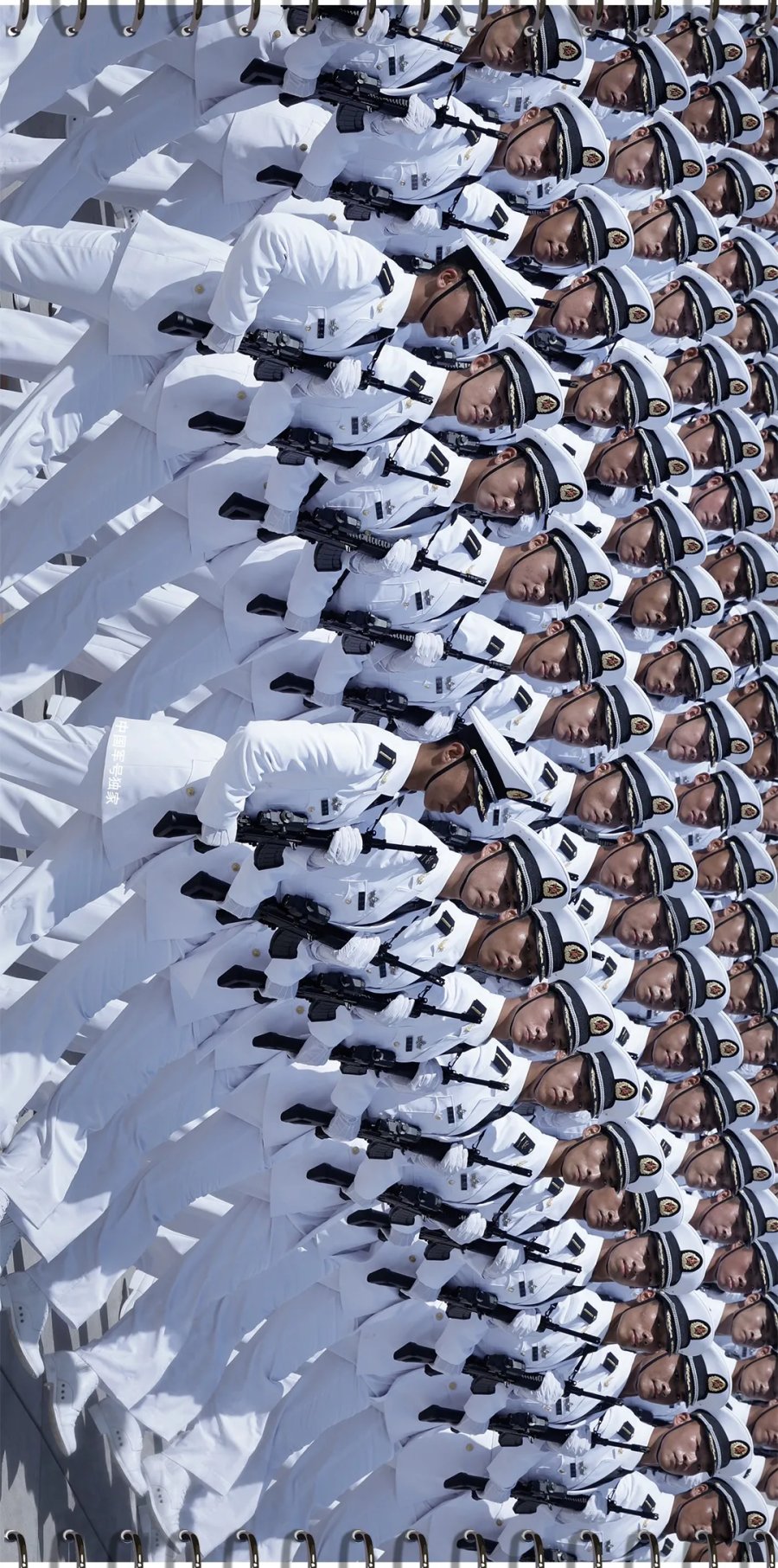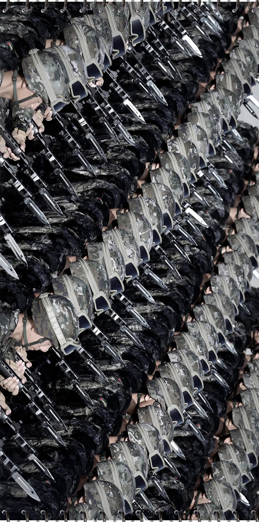 在阅兵集训点,受阅方队正进行阶段性训练验收。训练现场,女民兵铿锵的步伐、坚毅的眼神,一个字:飒!