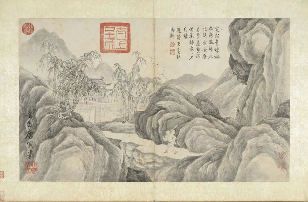 意旨清肃,不取繁华。寒鸦未定巢,影先压天;风起细沙,声在深涧。文士独立,心境与秋光相契;远思如水,归念随群翼回旋。画中寡色,情味深长;以少驭多,以静制动,清寒透骨而不苦,孤高入格而不枯。名曰寒鸦欲集,寓志在坚贞,寓情在羁旅。卷合灯微,岩纹尚活;再展时,林气逼人,波痕似动,胸湖顿宽,烦虑尽销;余韵在案,若霜若琴,连夜不歇。回首远岫隐现,暮烟淡合,万籁沉寂,唯有群影层翻,点破空明。读画至此,心气渐平,袖底生凉,石上生月,静与高并。神遂远。