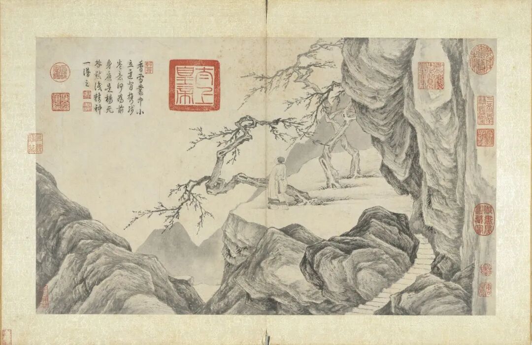 仕途中折,心路远,扫迹尘寰,寄情丘壑。此册多与立轴相应,或一稿再作,或后学临摹,笔脉相承,神采未减。