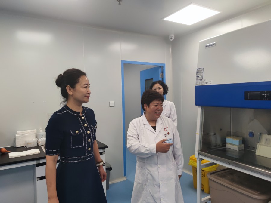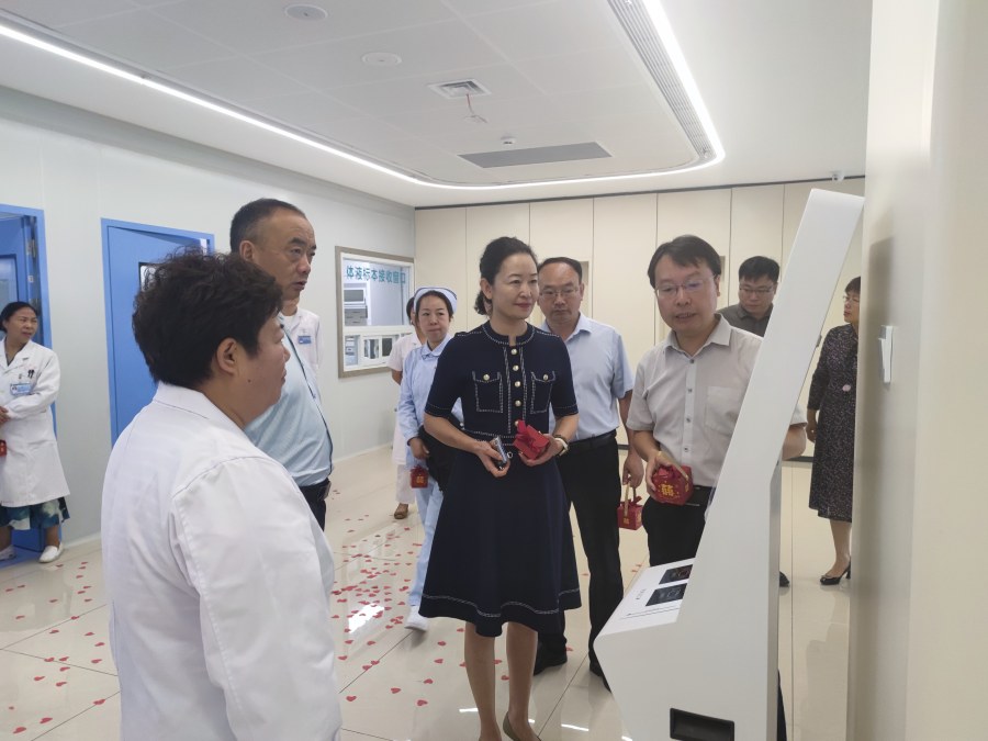 仪式结束后,在检验科主任许瑞娜的带领下,李进一行对检验科设备、试剂、实验室布局等进行了现场调研。