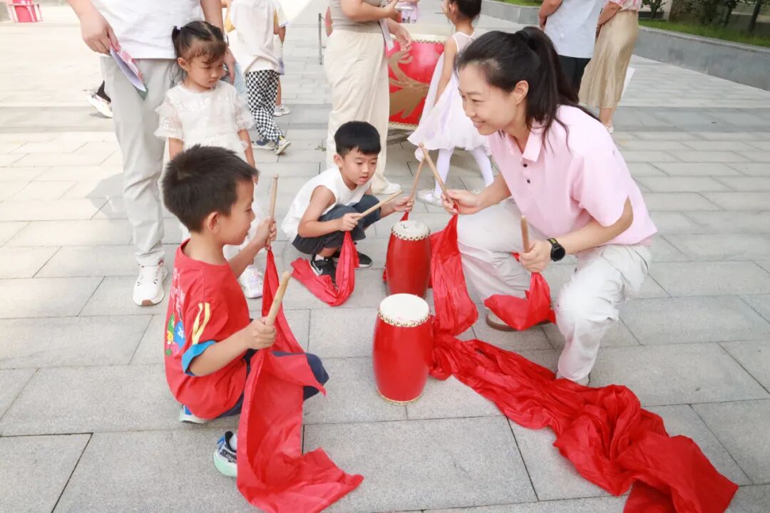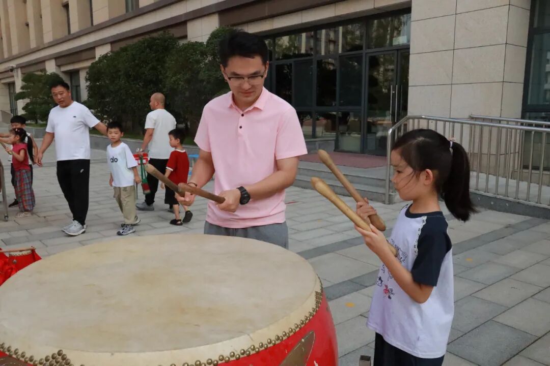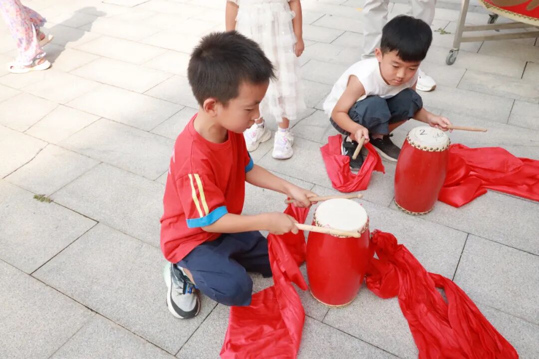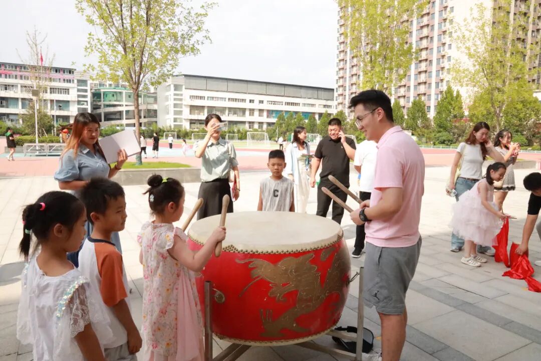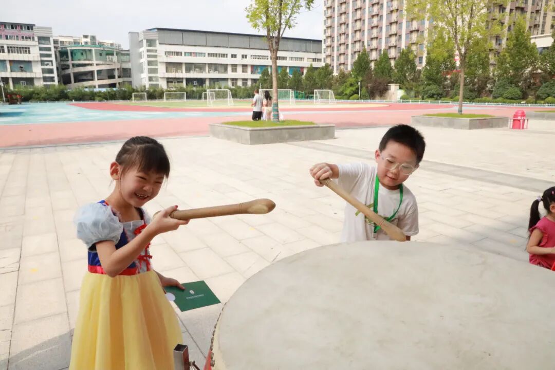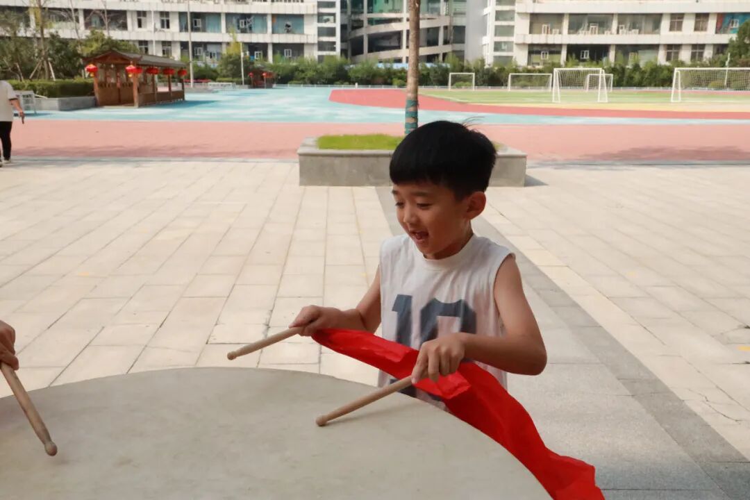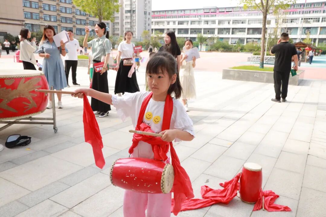 在腰鼓长廊敲响大鼓,“一击明志,再击启智,三击致远”,每一槌都承载着“一鸣惊人”的殷切期盼,美好期许在校园中回荡。