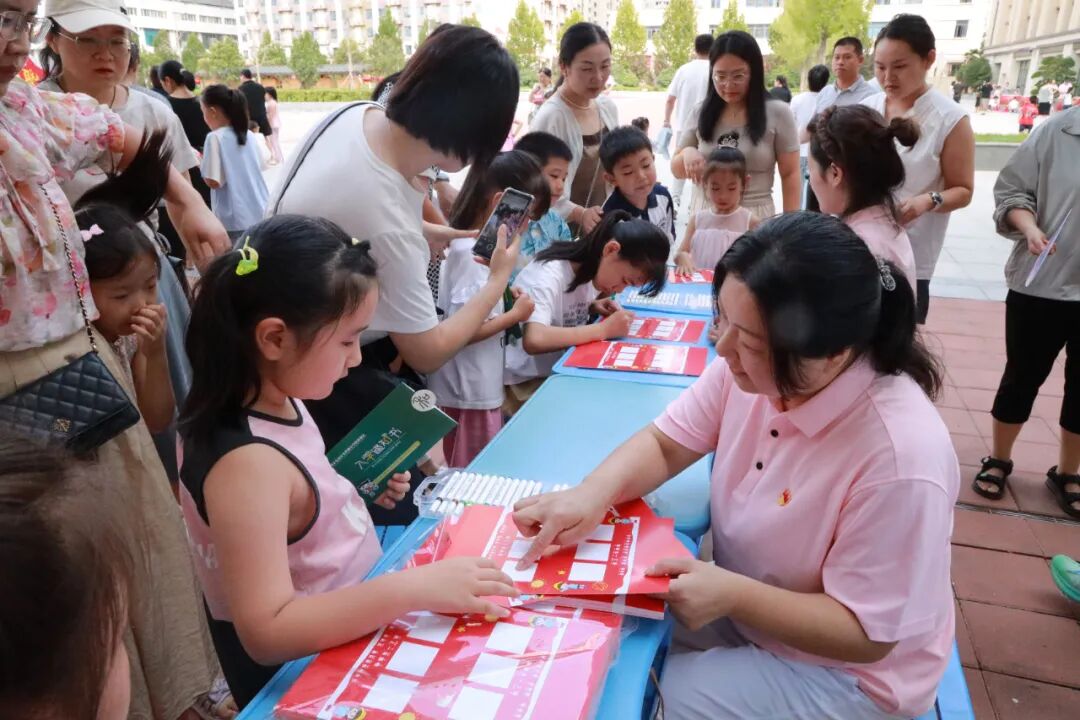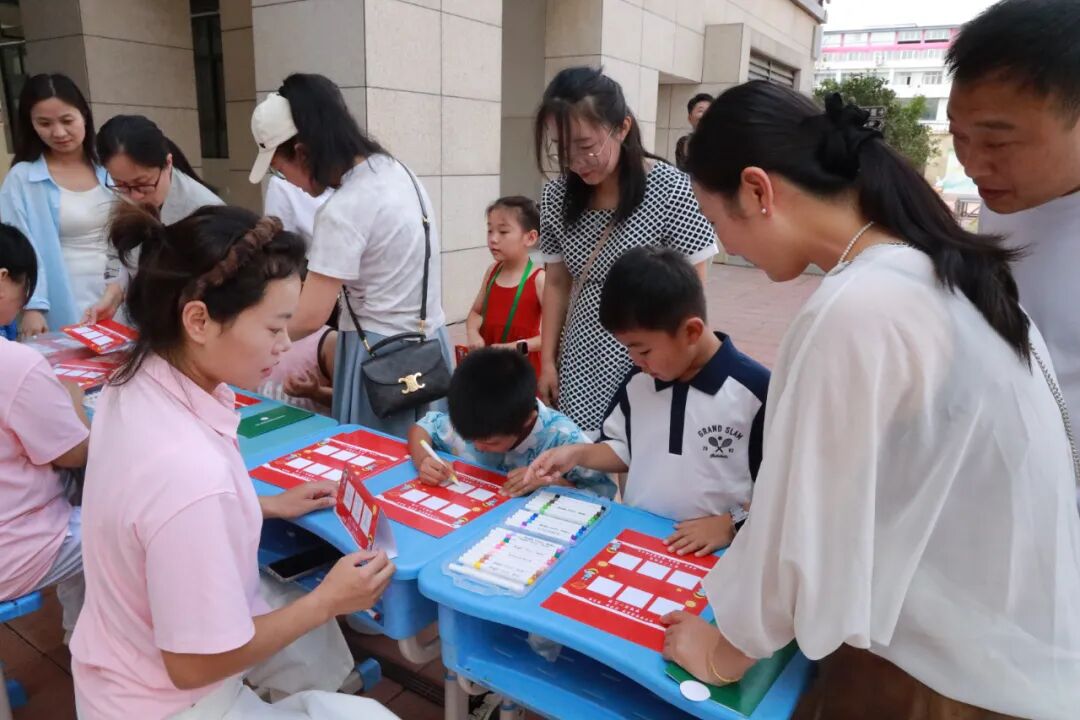 下午的入学仪式各班级错峰进行,校园在午后阳光下更显活泼和生机。孩子们牵着爸爸妈妈的手走进布置一新的教室,在班主任的见证下,庄重接过属于自己的入学通知书。