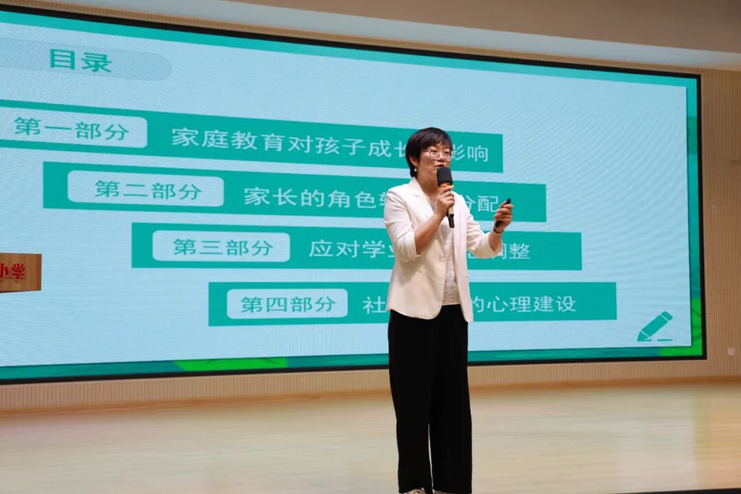 中科院心理咨询师、国家高级家庭教育指导师张芯玥老师以“从心开始,漫步一年级”为主题,与家长分享了小学阶段家庭教育的理念与方法。张老师以专业视角融入家长的同理站位,围绕幼小衔接、习惯培养、心理适应等关键话题,为家长提供了实用而深入的建议。