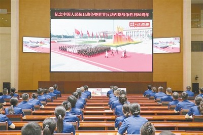 全市广大干部群众观看中国人民抗日战争暨世界反法西斯战争胜利80周年纪念大会