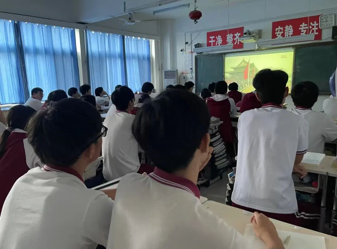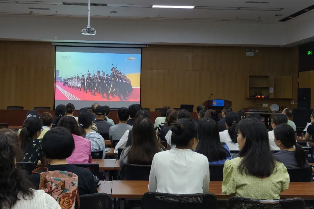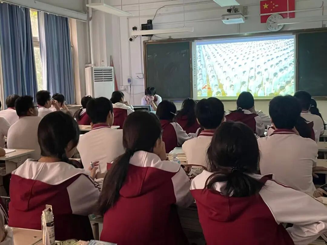 上午9时,学校各班级教室、大会议室内气氛庄重而热烈。师生们齐聚屏幕前,全神贯注地观看在北京天安门广场举行的盛大阅兵仪式。