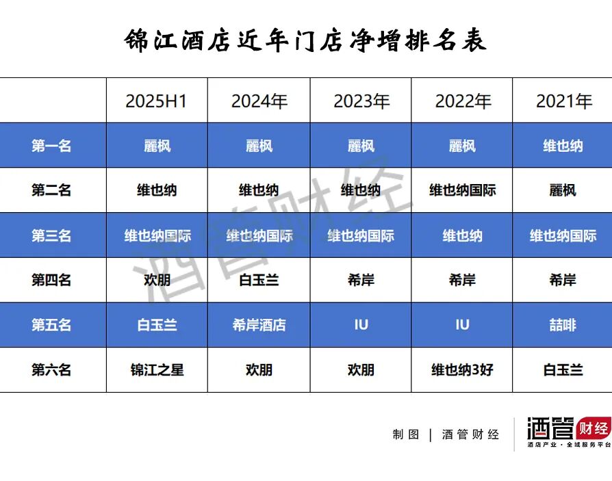 也就是说,从2021年至今,锦江酒店共有11个品牌出现在门店净增排行榜前六的位置上。