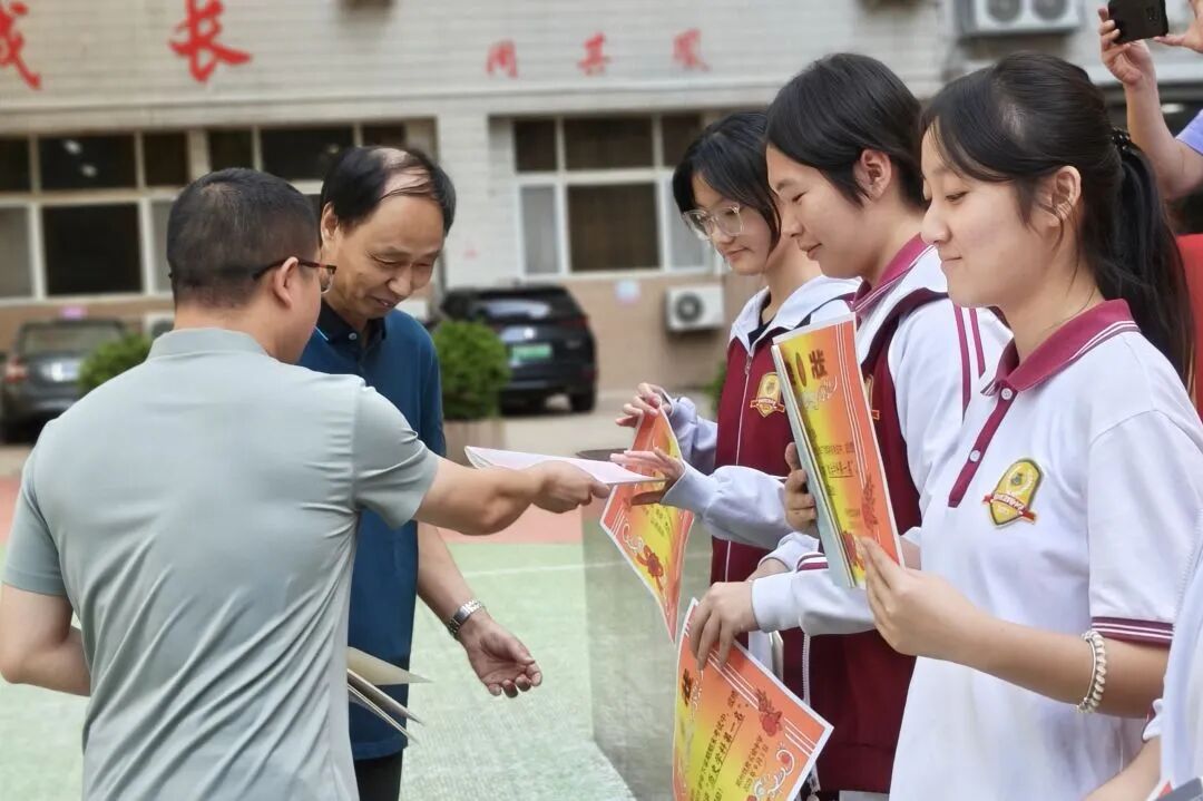 高欣欣老师为获奖同学送上祝贺,并温暖鼓励暂时落后的同学:"就像小树不会因为暂时长得慢而停止扎根",学习路上的暂时落后是在为下次冲刺积攒能量。刘秋霞老师以"登山之旅"比喻高中三年,精辟指出高二正值"半山居雾若带然"的关键阶段。她勉励同学们体会"学习独有的浪漫",在坚持中收获成长。杨松侠老师则寄语各年级学生:愿高一"向阳而生",愿高二"厚积薄发",愿高三"乘风破浪"。她们代表全体教师承诺将做学生最坚实的后盾,用"严"与"爱"陪伴学生迎接挑战。