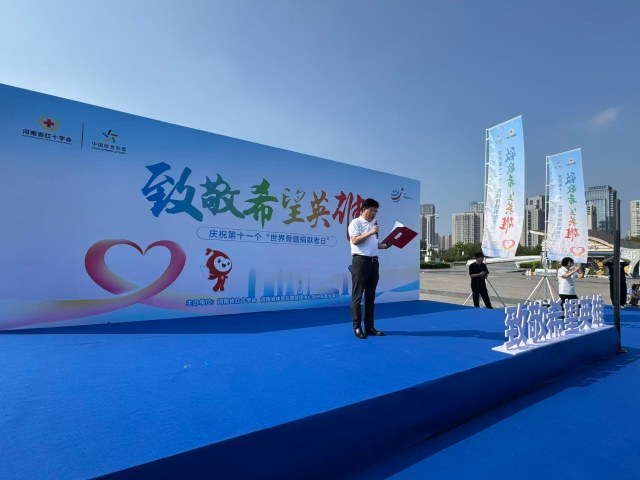 9月20日是第十一个“世界骨髓捐献者日”。为弘扬“人道、博爱、奉献”的红十字精神,当天上午,河南省红十字会与河南省体育彩票管理中心郑州东区分中心在郑东新区如意湖广场联合举办“致敬希望英雄”暨第十一个“世界骨髓捐献者日”主题宣传活动。