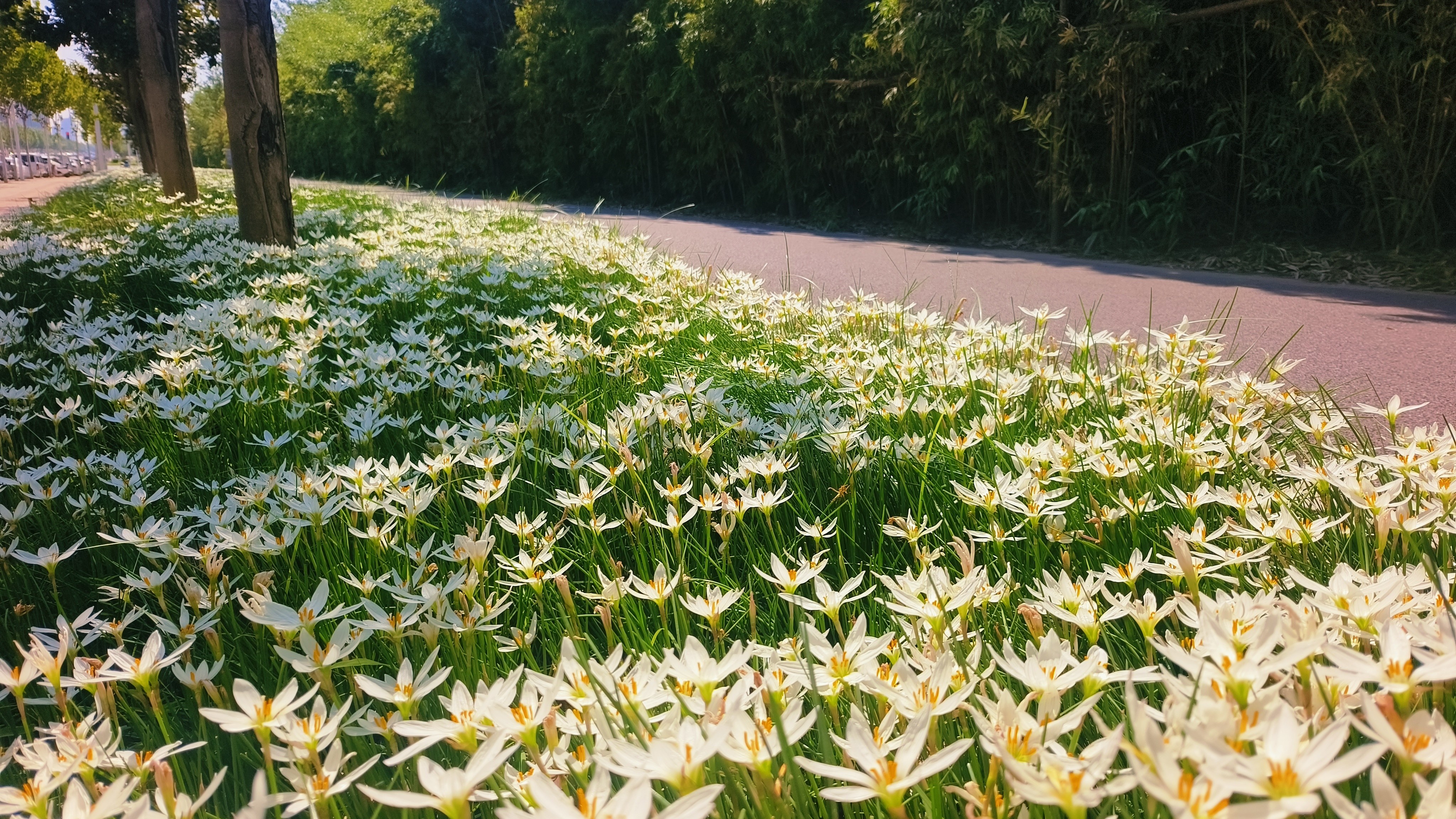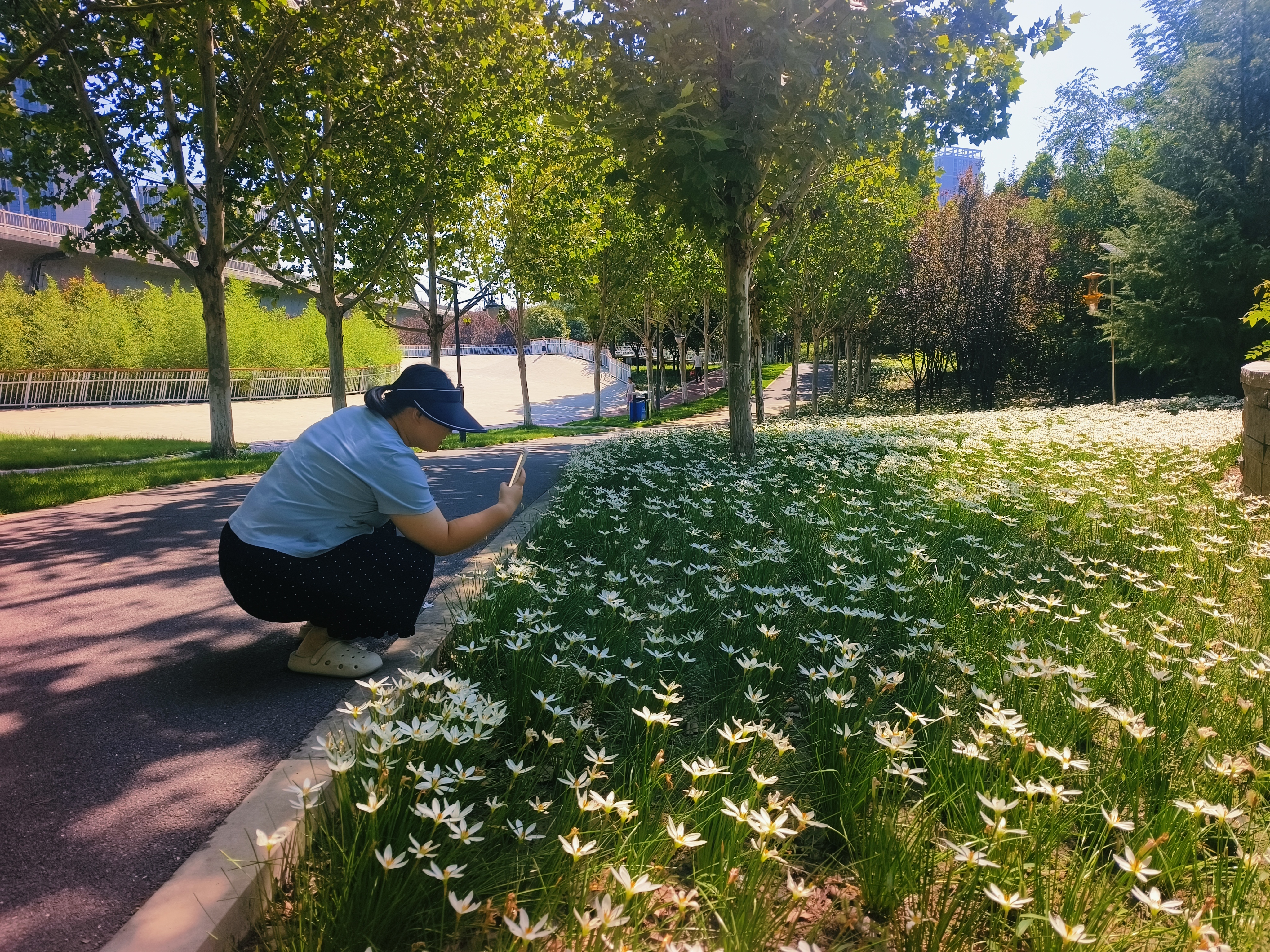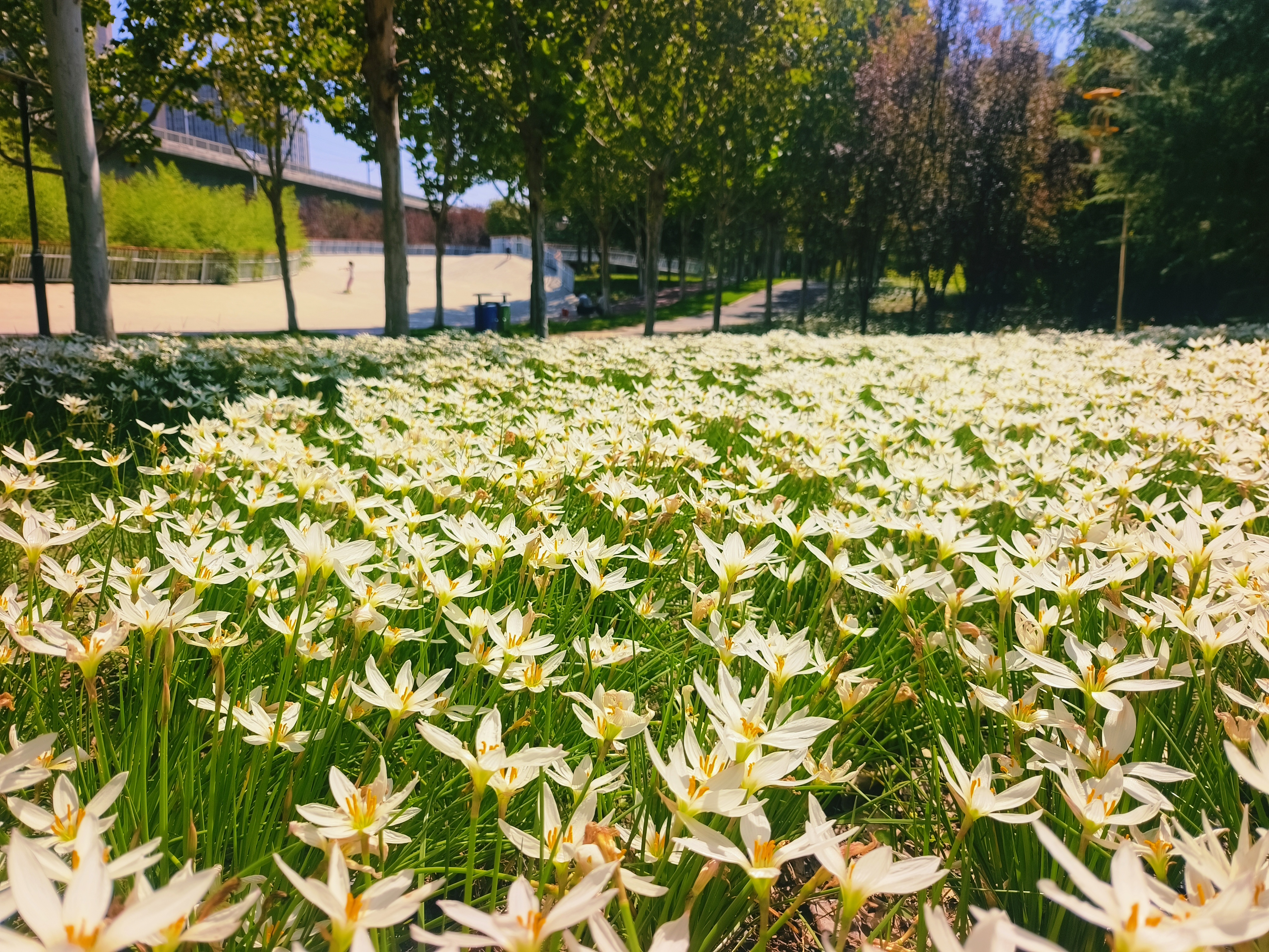 初秋时节,一场风雨过后,二七区高铁运动公园迎来了独特的景致——大片葱兰悄然绽放,为秋日增添了一抹清新雅致的色彩,成为市民休闲赏花的新晋好去处。