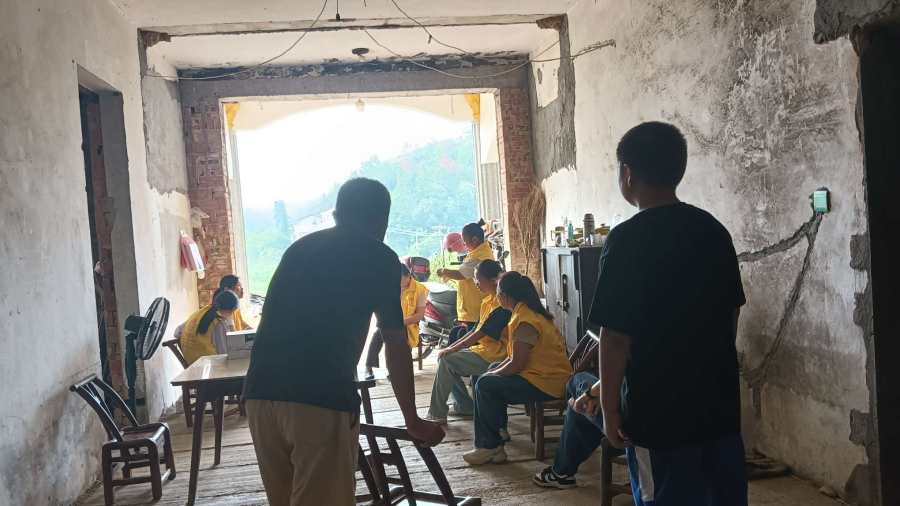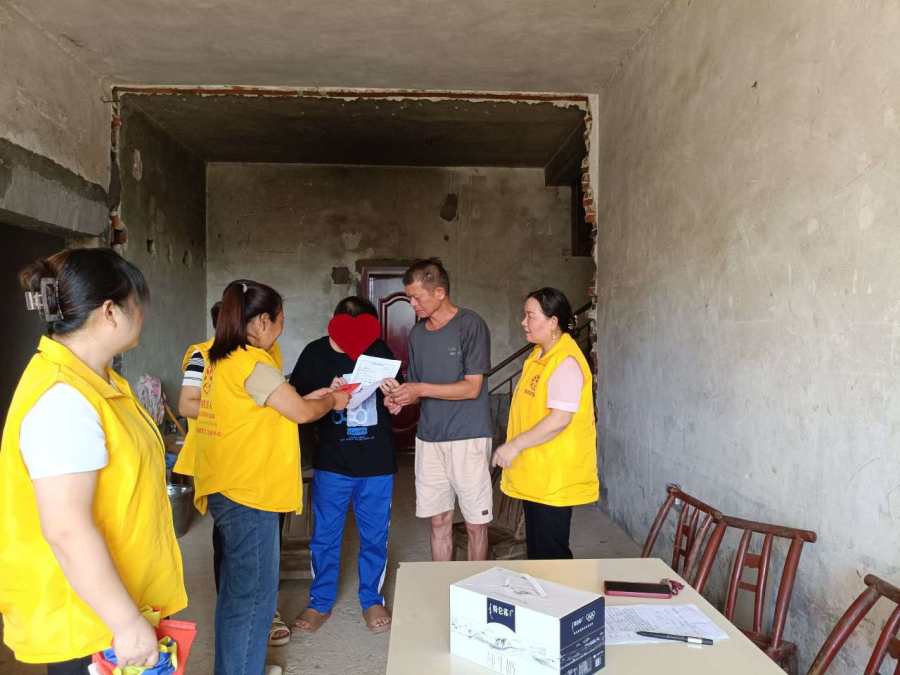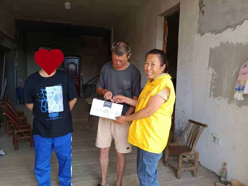 上午九时,十余名义工代表带着慰问金和牛奶敲开了小梓家的门。有点破旧的屋内陈设简陋,父亲朱先生脸上写满了疲惫与焦虑,整个家庭气氛因变故而显得沉重。义工们详细询问了朱先生的伤势恢复情况和家庭目前面临的实际困难。第一次参加活动的义工陈先玲女士紧紧握住朱先生的手说:“灾难无情人有情,你们不是孤军奋战。我们带来的一份微薄心意,希望能帮到你家一点。更重要的是,我们希望传递一份力量和信心,请一定要保重身体,坚强面对。”义工们还耐心记录了家庭在医疗、孩子学业、日常生活等方面的具体需求,以便后续提供更具针对性的帮助。