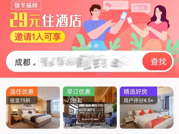2020年,OYO率先推出“29元一口价随心住”活动,只要将优惠券分享给好友,新用户可获得29元入住1晚的权益,随后更是推出被分享的新用户也只需9.9元即可入住的活动。