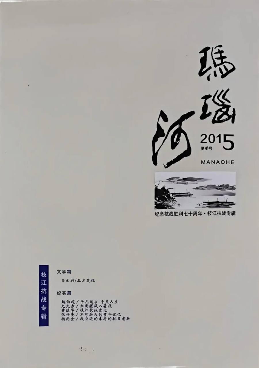 《三方英雄》既成,吾速交《玛瑙河》编辑部。未几,得样刊,封面绘玛瑙河风光,“枝江抗战专辑”六字以蓝底白字印就,格外醒目。吾持刊示母,母戴老花镜,逐字读之,至张缵殉国段,眼角微红,以手背拭之,转而笑曰:“汝将舅父写活矣。”