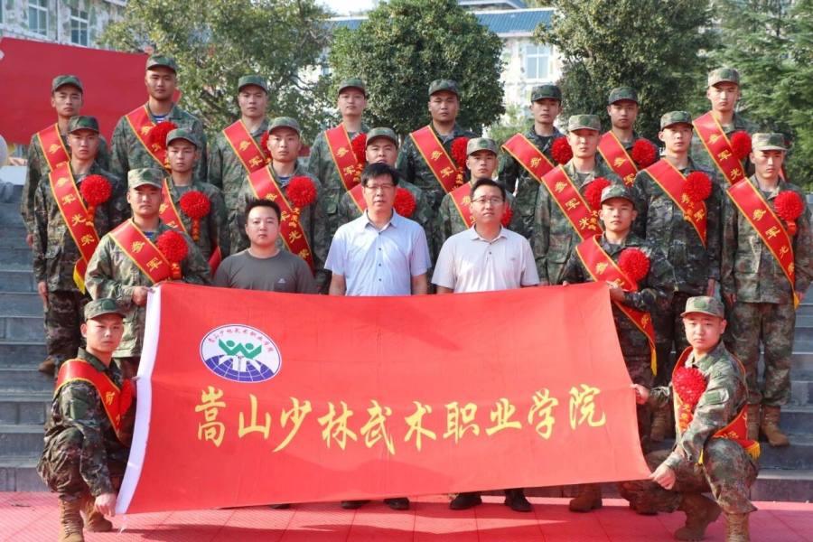 9月14日,塔沟教育集团嵩山少林武术职业学院举行2025年秋季大学生应征入伍欢送会,欢送在学校光荣入伍的新兵。