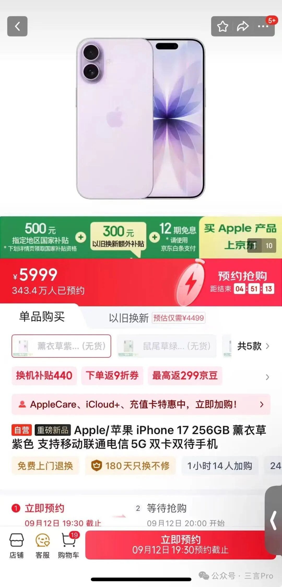 和前几天预购一样,iPhone17线上一上架,各大平台就被抢购一空。今天正式开售,不到一分钟全网基本无货了。