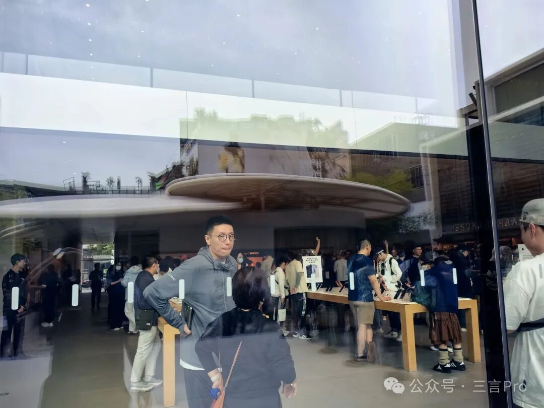 因为人太多,所以苹果门店实行了限流,出来几个人,再放进去几个人。