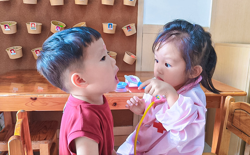 活动中,幼儿园结合不同年龄段幼儿的发展特点,分层开展了丰富多样的活动。小小班和小班以直观感知和趣味启蒙为主,小小班幼儿在教师引导下认识门牙、磨牙的外形区别,通过数数自己的牙齿感知数量,明白牙齿能咬碎食物、帮助说话;小班幼儿则了解吃甜食后不清洁易让牙齿被“蛀虫”伤害的原因,初步建立“保护牙齿”的意识。中班深入探究牙齿的功能,知晓牙齿具有咀嚼、辅助发音的作用,同时了解龋齿的危害,牢固掌握“早晚刷牙、饭后漱口”的基本护牙原则;此外,中班幼儿还通过护牙快板儿歌录制、亲子手抄报制作、护牙绘画创作等创意形式,多角度表达对护牙的理解与思考。大班聚焦换牙这一成长课题,理解乳牙脱落、恒牙生长是正常生理现象,消除对换牙的恐惧;并开展护牙手工与调查活动,如用黏土制作“我的牙齿”“小白牙的故事”,制作换牙调查表,创作剪贴画“保卫牙齿”、立体手工“牙齿娃娃”等,同时在角色扮演、实践操作中,了解更多护牙常识,如不用牙齿咬硬物、定期看牙医等。整个活动以动画、绘本、实物模型、亲子互动、角色扮演等多元形式,让幼儿在玩中学、学中悟,将护牙知识内化为日常习惯。