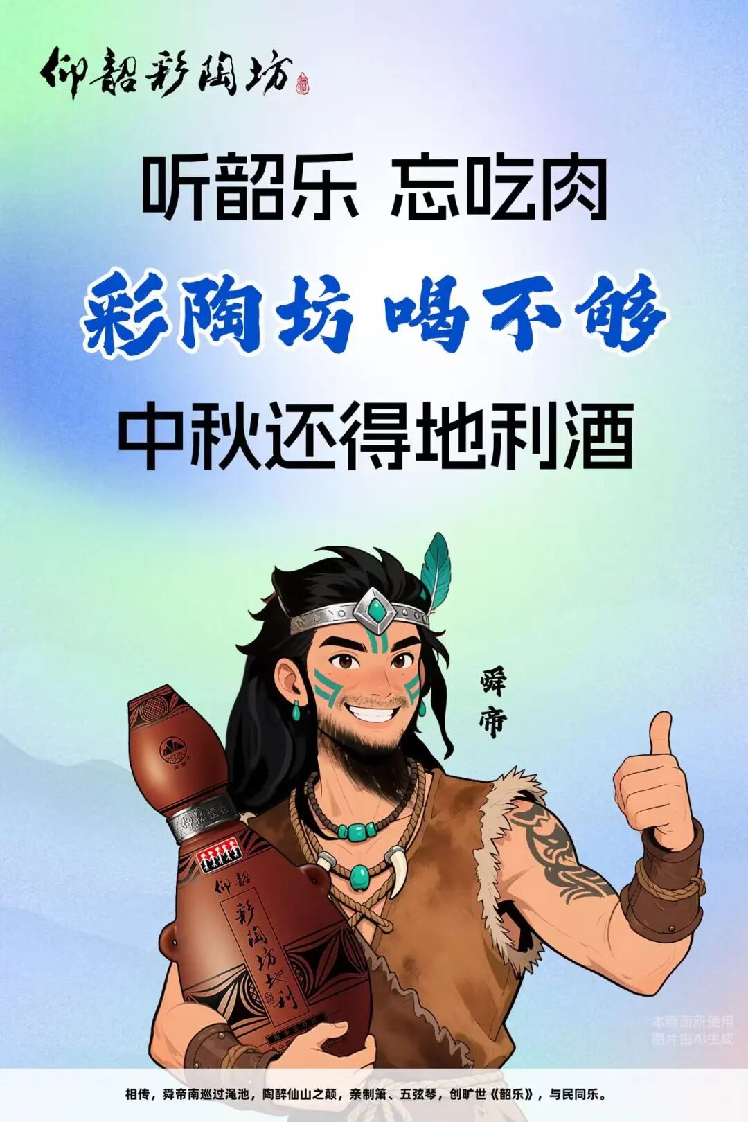 没有华丽的产品特写,没有宏大的酿酒场景,取而代之的是舜帝、秦昭襄王、苏东坡三位“渑池代言人”的趣味画风,配上“中秋用地利大吉大利”“停戈干饭”“打赢不如喝赢”等魔性文案,仰韶彩陶坊在巳蛇中秋给河南消费者奉献了一份团圆大餐。