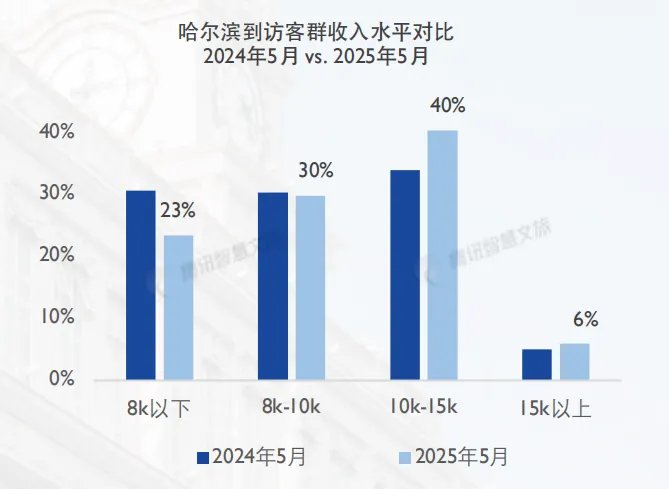 尤其值得注意的是,中⾼消费客群规模显著扩⼤,月收⼊过万的游客占⽐从39.0%提升⾄46.6%。