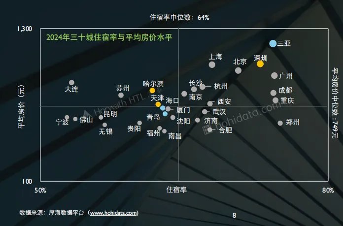 虽然暑期客流量很大,入住率仍处于高位,但2025年暑假哈尔滨酒店的平均房价较2024年同期和冬季均有所下降。