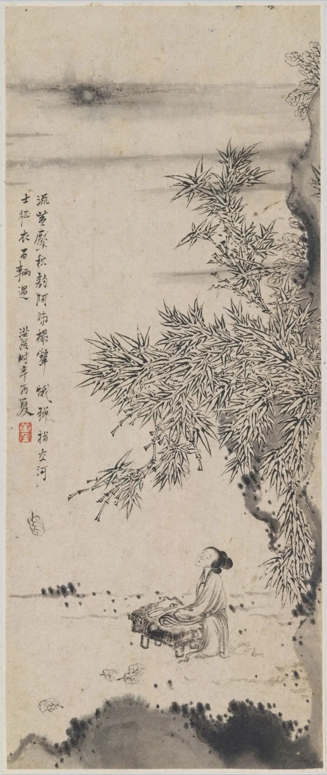 全幅气息高洁,不事繁饰而意境深远。竹影摇曳,人物凝神,画中有声,声中见景。此境空灵,恍若琴音随风,澄怀味象;亦若清梦入画,心随云水。画者笔意高古,情致悠远,于方寸之间寄托千里风烟,真可谓雅逸之极。