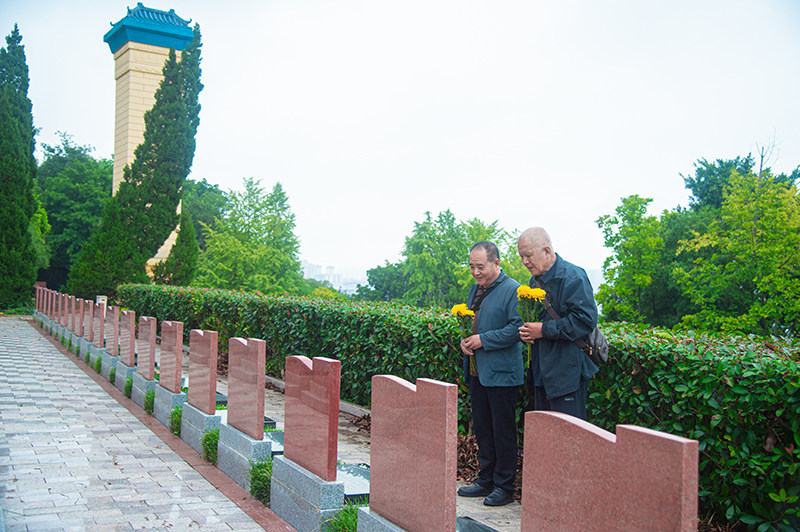 9月20日,位于四川南充市西山风景区的烈士陵园内展现感人一幕,从山西省临汾市襄汾县西贾乡万东毛村赶来的文来成烈士儿子文忠娃以及孙子在南充市烈士纪念设施保护中心相关工作人员的陪同下,来到烈士“文来成”墓前祭拜。