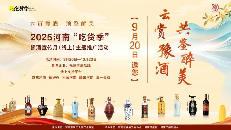 作为河南省“吃货季”系列活动的重要组成部分,豫酒宣传月旨在贯彻落实工信部、商务部、市场监管总局关于“吃货季”食品提质扩需的工作部署,进一步弘扬中原酒文化,激发节日消费潜力,推动豫酒品牌走向全国、走进千家万户。因此,考虑到今年市场环境和形势的变化,2025年度的豫酒宣传月活动,除了线下活动外,还重点打通了线上渠道和平台,以“云赏豫酒 预鉴醉美”为主题,依托京东、郑好办、抖音、腾讯等多个主流线上平台,集中展示、推广豫酒品牌,意在打造一场贯穿中秋、国庆的豫酒文化盛宴